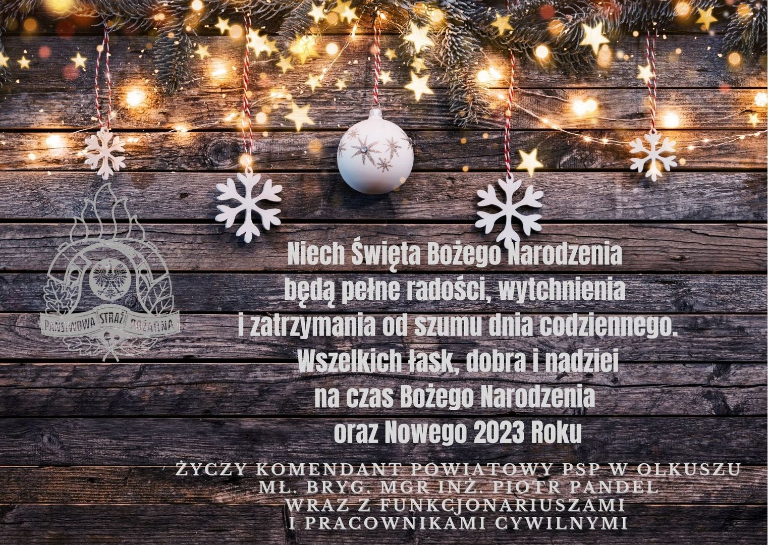 Życzenia świąteczno noworoczne Komendanta Powiatowego PSP w Olkuszu Zdjęcia (1) Pokaż zdjęcie 1 z galerii.