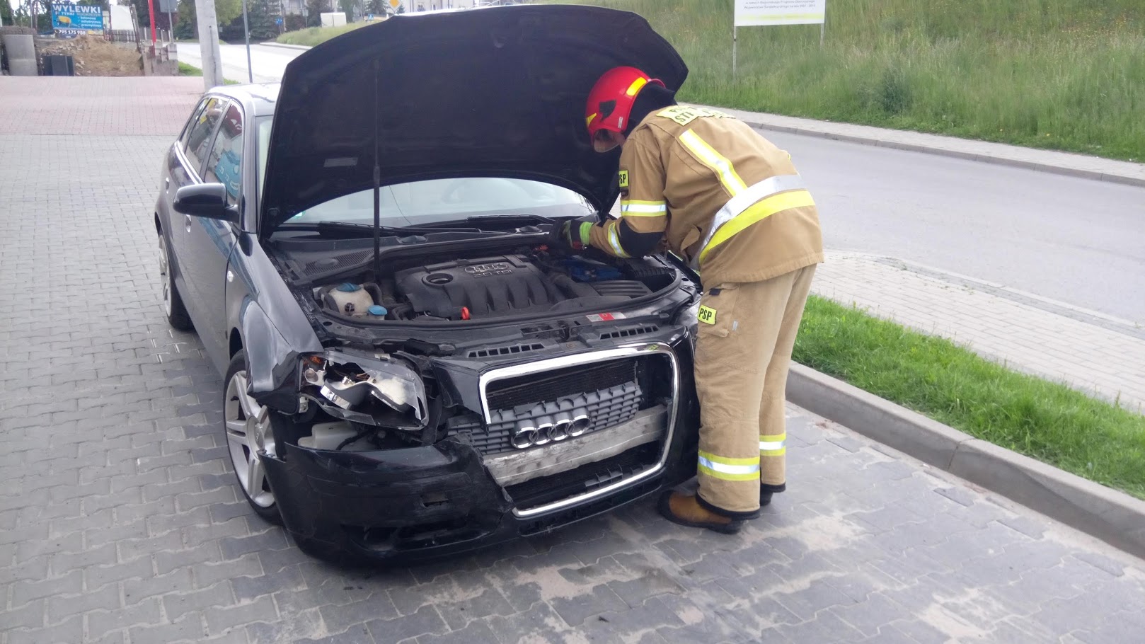 Po przybyciu na miejsce zdarzenia zastępu Straży Pożarnej stwierdzono, że na odcinku DK9 w miejscowości Opatów doszło do zdarzenia drogowego, w którym uczestniczyły dwa samochody osobowe. Samochód BMW X4 znajdowało się na poboczu drogi natomiast Audi A3 poza pasem drogowym, na pobliskiej stacji paliw. Ruch na DK 9 odbywał się w obu kierunkach. Pojazdami podróżowali jedynie kierowcy, obie osoby opuściły pojazdy przed przybyciem Straży Pożarnej nie odnosząc żadnych obrażeń. Działania zastępu polegały na zabezpieczeniu miejsca zdarzenia i odłączeniu akumulatorów w autach.