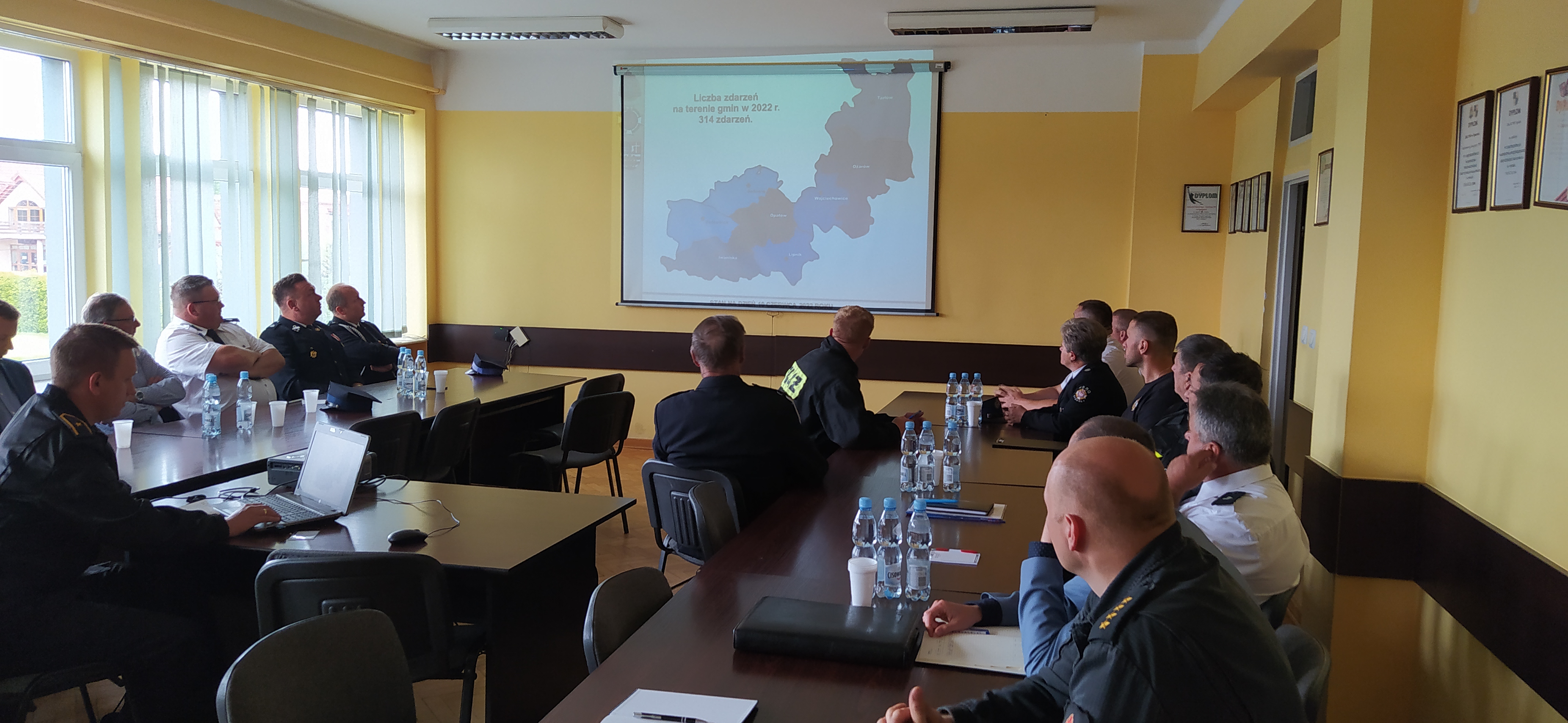15 czerwca 2022 roku w siedzibie Komendy Powiatowej PSP Opatowie przeprowadzono naradę operacyjną z prezesami gminnymi OSP, komendantami gminnymi OSP, prezesami OSP z KSRG, naczelnikami jednostek OSP z KSRG przedstawicielami Urzędów Gmin powiatu opatowskiego.