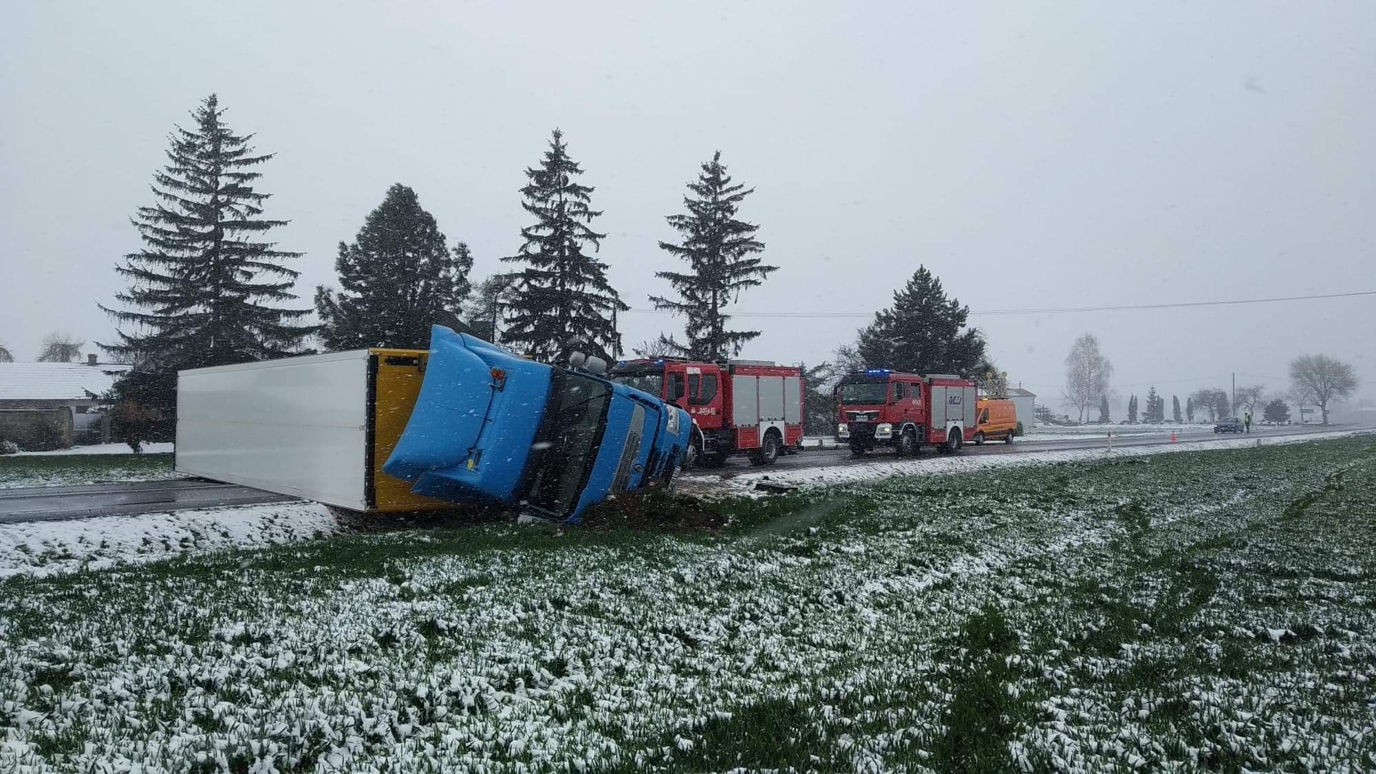 14 kwietnia 2021 r. w godzinach porannych Stanowisko Kierowania Komendanta Powiatowego Państwowej Straży Pożarnej w Opatowie otrzymało zgłoszenie o przewróconym samochodzie ciężarowym w miejscowości Przybysławice.