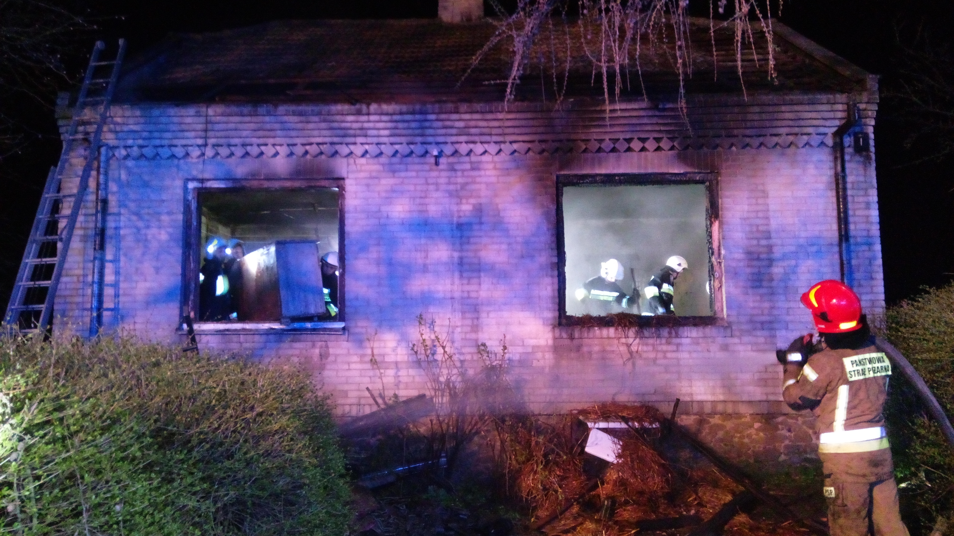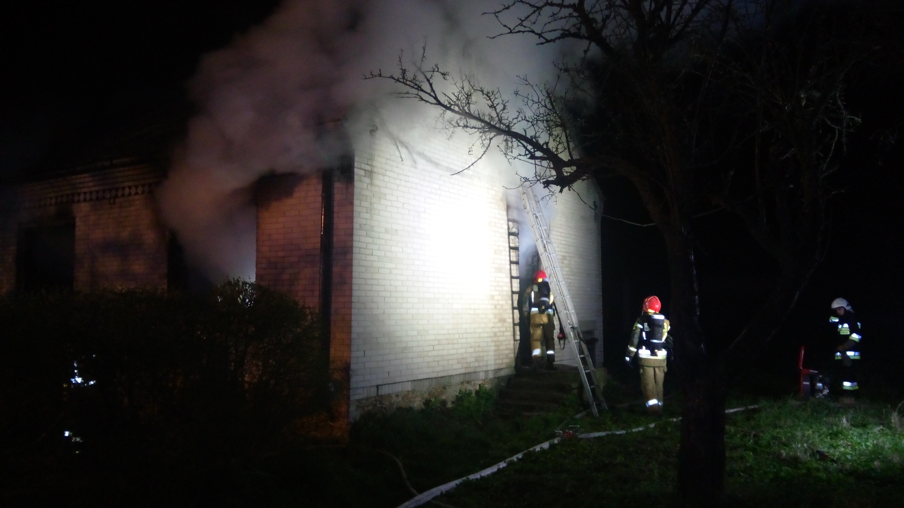 Po dojeździe na miejsce zdarzenia zastępów straży pożarnej stwierdzono pożar budynku mieszkalnego jednorodzinnego. W chwili dojazdu jednostek ochrony przeciwpożarowej pożarem objęte były pomieszczenia na parterze budynku w stopniu uniemożliwiającym wprowadzenie roty ratowników do środka w celu poszukiwania osób poszkodowanych. Działania zastępów straży pożarnej polegały na zabezpieczeniu miejsca zdarzenia, podaniu dwóch prądów wody w natarciu na palący się budynek a po zlokalizowaniu pożaru, wprowadzeniu roty do środka budynku w celu przeszukania i potwierdzenie braku osób wewnątrz budynku. W trakcie prowadzonych działań na miejsce przybyła Policja, która potwierdziła, że osoba zamieszkująca budynek w chwili wybuchu pożaru znajdowała się w innym miejscu. Po przeszukaniu i oddymieniu pomieszczeń, pogorzelisko sprawdzono przy pomocy kamery termowizyjnej, osób poszkodowanych brak. Po ugaszeniu i przewietrzeniu pomieszczeń w budynku całą więźbę wraz z ociepleniem stropu sprawdzono kamerą termowizyjną aby wykluczyć ponowne powstanie pożaru.