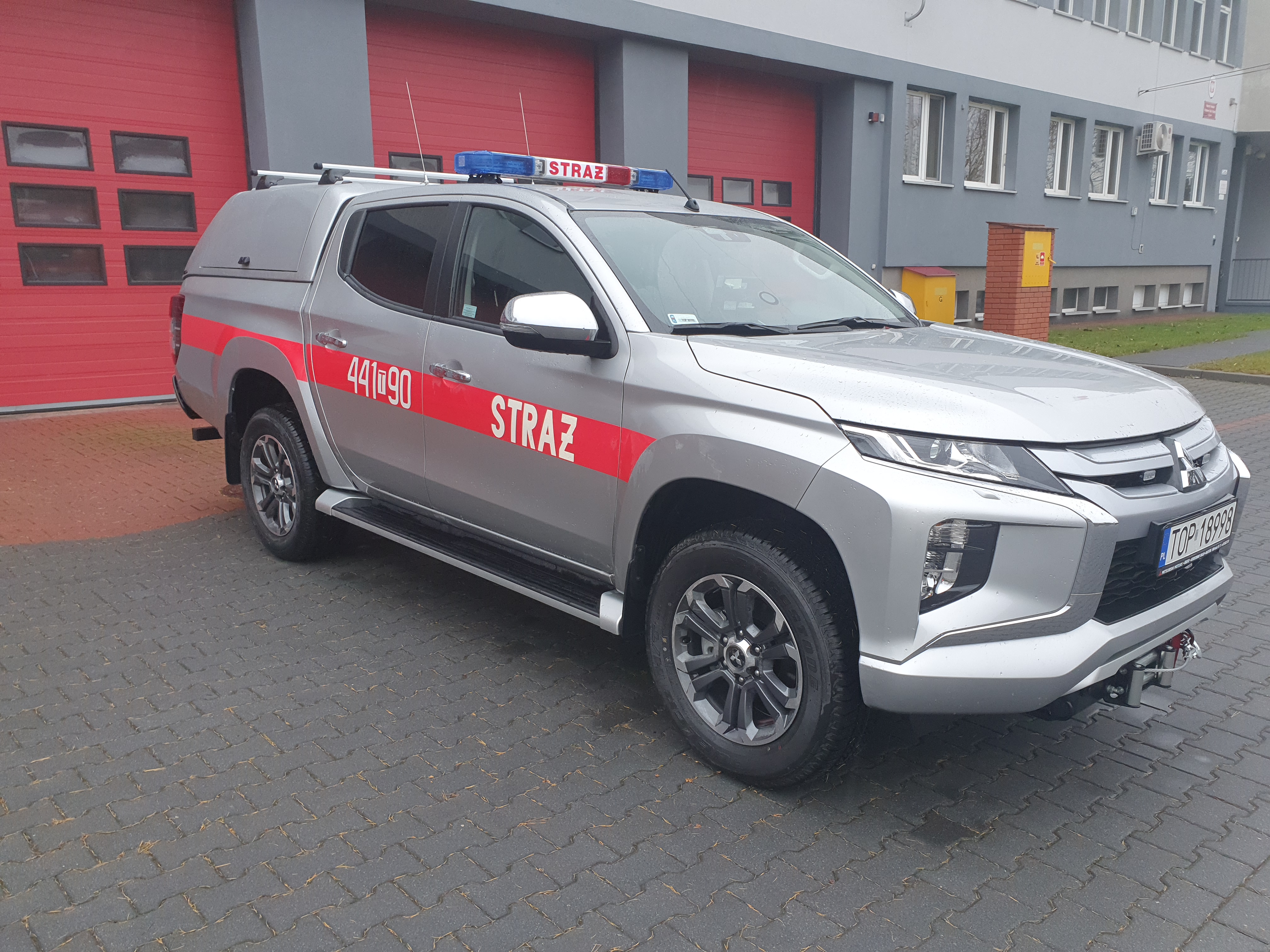 Komenda Powiatowa Państwowej Straży Pożarnej w Opatowie zakupiła nowy lekki samochód rozpoznawczo-ratowniczy typu SLRr na podwoziu Mitsubishi L200 o napędzie 4x4.