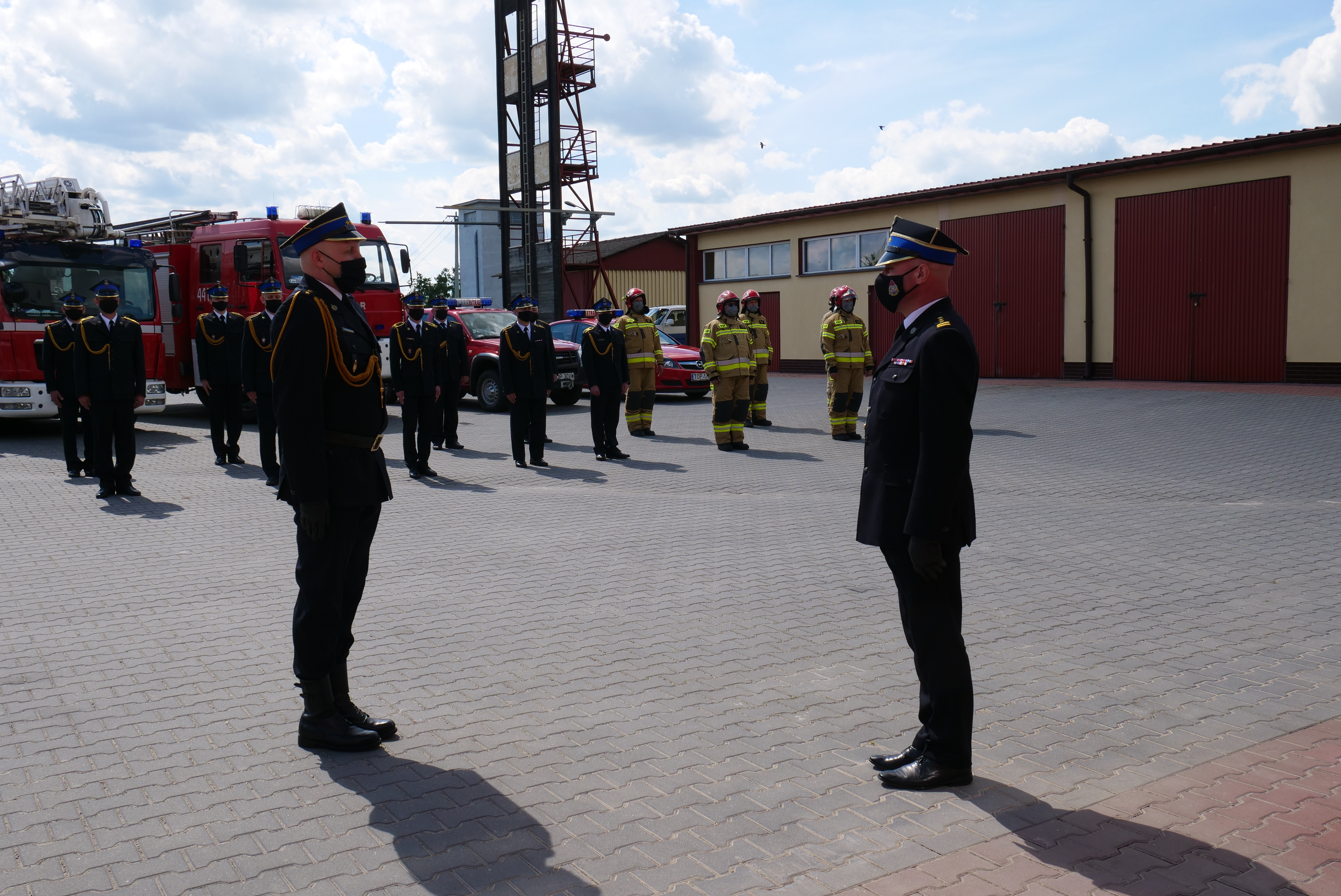 Uroczystość rozpoczęła się od złożenia meldunku zastępcy świętokrzyskiego komendanta wojewódzkiego PSP w Kielcach st. bryg. Grzegorzowi Rajcy przez dowódcę uroczystości st. kpt. Sebastiana Saramańskiego. Następnie komendant powiatowy Państwowej Straży Pożarnej w Opatowie st. kpt. Sylwester Kochanowicz powitał przybyłych gości na czele z zastępcą świętokrzyskiego komendanta wojewódzkiego PSP w Kielcach st. bryg. Grzegorzem Rajcą, starostą opatowskim Tomaszem Stańkiem, wicestarostą opatowskim Małgorzatą Jalowską, Członkiem Zarządu Oddziału Wojewódzkiego ZOSP RP w Kielcach dh. Adamem Mazurkiem oraz strażaków i pracowników komendy.