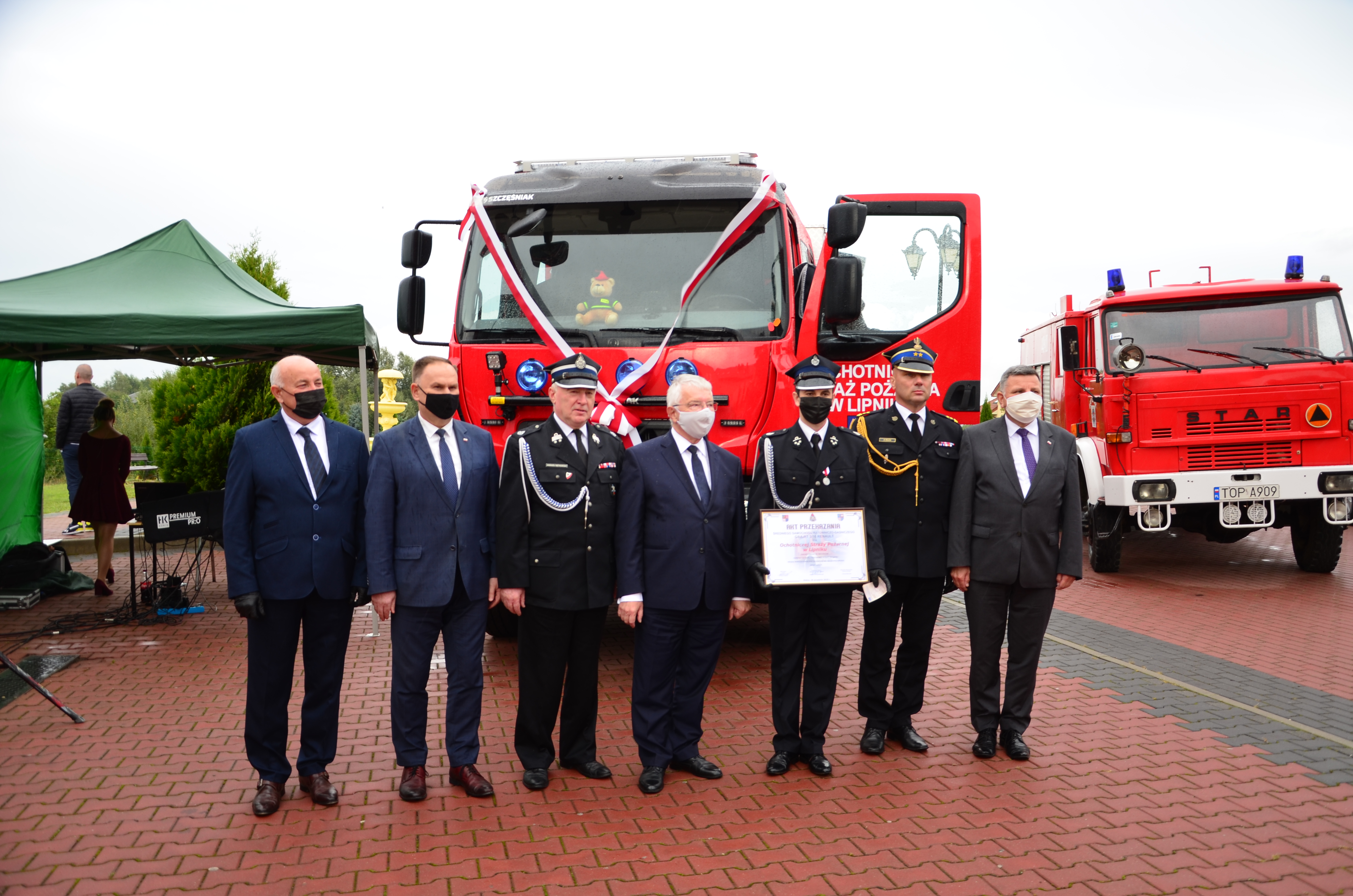 Okolicznościowy akt przekazania i kluczyki do nowoczesnego samochodu ratowniczo-gaśniczego naczelnikowi OSP Lipnik przekazali Marszałek Województwa Świętokrzyskiego Andrzej Bętkowski, Zastępca Świętokrzyskiego Komendanta Wojewódzkiego PSP w Kielcach bryg. Grzegorz Rajca oraz Wójt Gminy Lipnik Andrzej Grządziel, którym towarzyszyli posłowie na Sejm RP Krzysztof Lipiec, Marek Kwitek oraz Andrzej Kryj.
