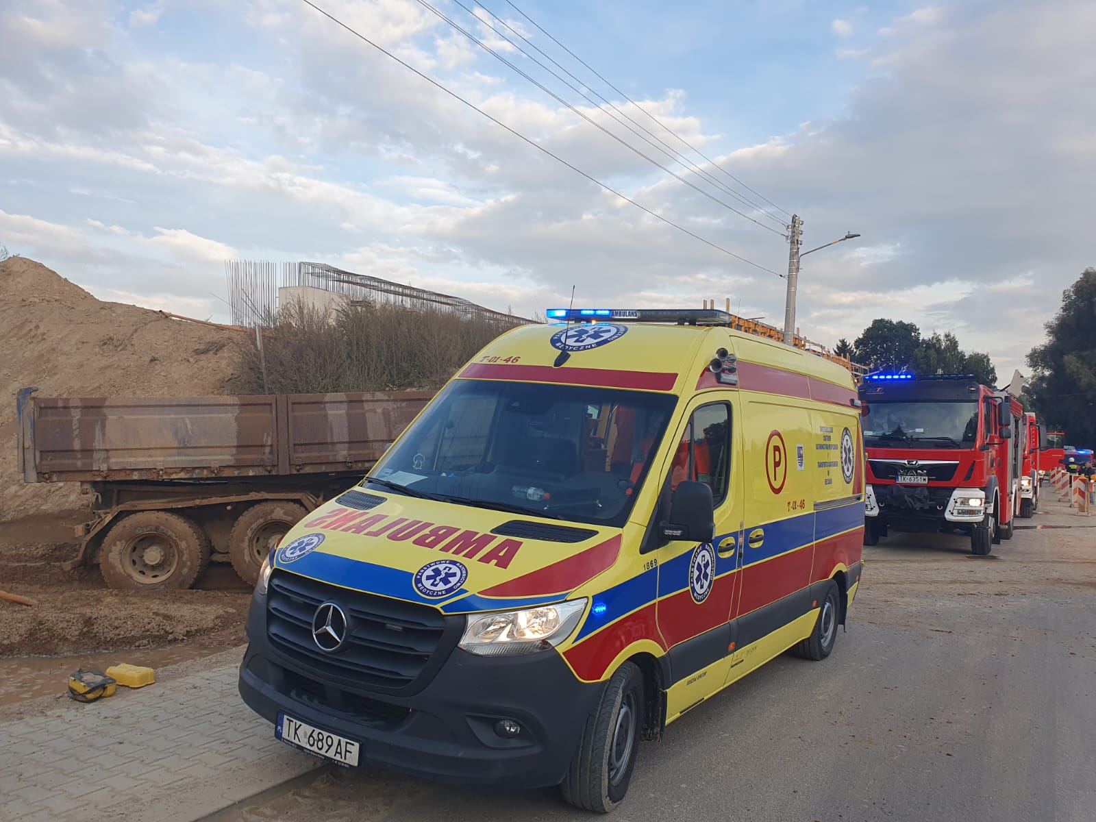 Przysypany mężczyzna w wykopie ziemnym przy budowie obwodnicy Opatowa