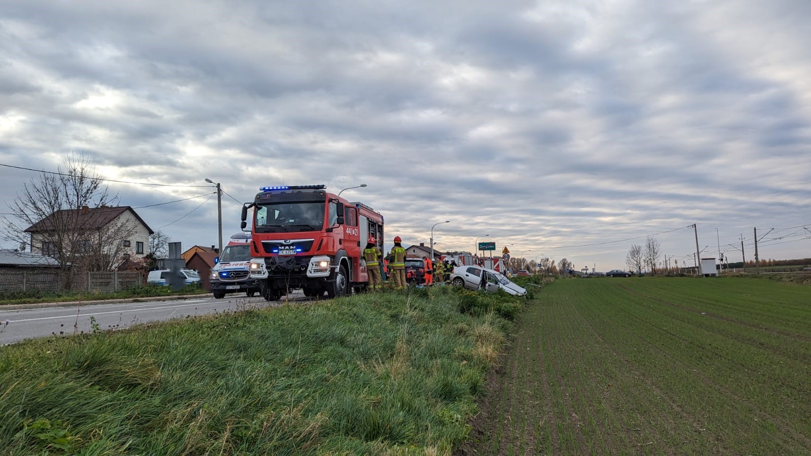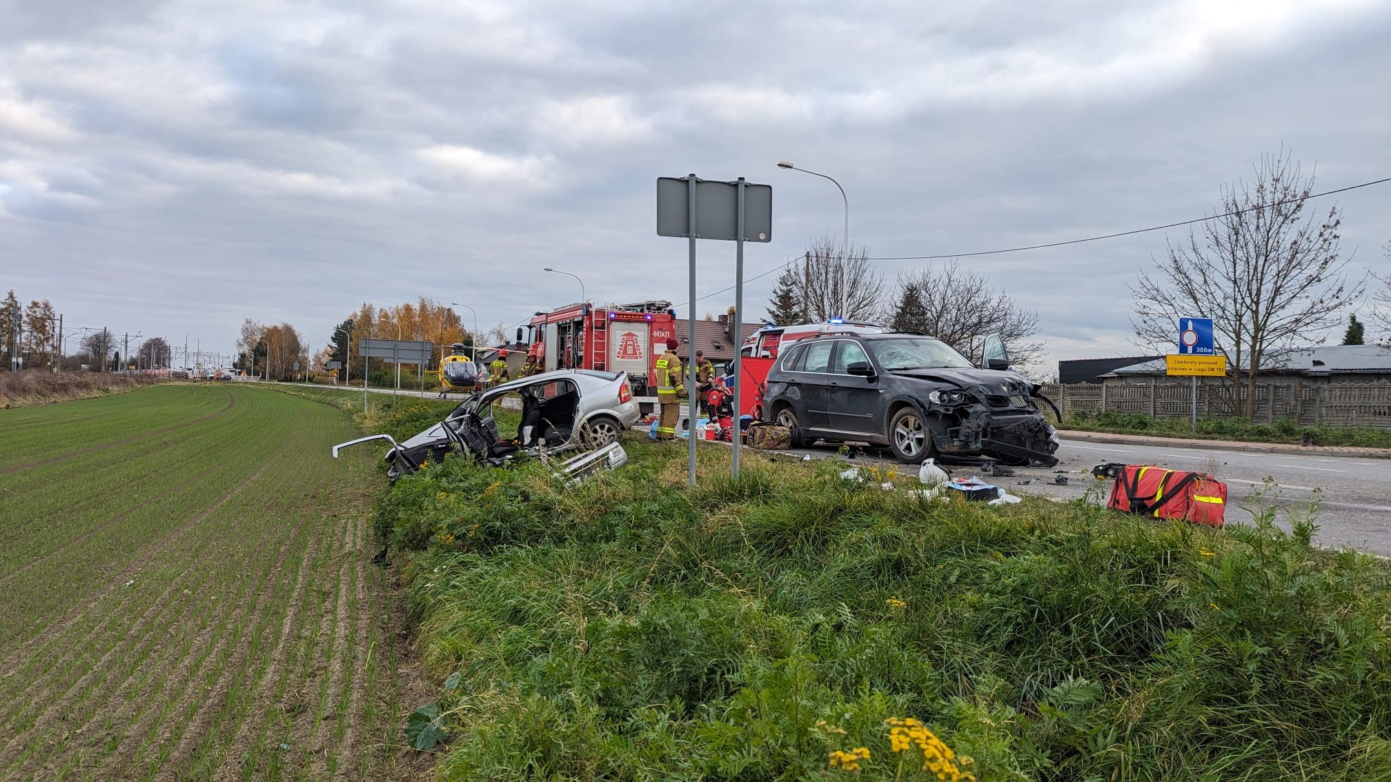Po dojeździe na miejsce zdarzenia zastępów straży pożarnej stwierdzono, że na drodze wojewódzkiej numer 755 w miejscowości Drygulec doszło do zderzenia samochodu osobowego Opel Astra z samochodem osobowym BMW X5. Samochodem Opel Astra, który znajdował się w przydrożnym rowie, podróżowały 4 osoby (kobieta, mężczyzna oraz dwoje dzieci w wieku 8 lat). Trzy osoby tj. mężczyzna oraz dwójka dzieci znajdowały się na zewnątrz pojazdu pod opieką Zespołu Ratownictwa Medycznego, natomiast w pojeździe znajdowała się uwięziona nieprzytomna, poszkodowana kobieta pod opieką Zespołu Ratownictwa Medycznego. Samochodem osobowym BMW X5 znajdującym się na jezdni podróżował tylko kierowca, który nie doznał żadnych obrażeń i znajdował się obok pojazdu. Droga Wojewódzka numer 755 była całkowicie zablokowana. Działania zastępów straży polegały na zabezpieczeniu miejsca zdarzenia, stabilizacji pojazdu, wykonaniu dostępu do uwięzionej kobiety, a następnie wydobyciu jej na noszach typu deska pod opieką Zespołu Ratownictwa Medycznego, odłączeniu akumulatorów w pojazdach oraz zakręceniu zaworu gazu w pojeździe Opel Astra. Następnie udzielano pomocy w wykonywaniu resuscytacji krążeniowo-oddechowej u poszkodowanej kobiety. Niestety lekarz stwierdził zgon poszkodowanej. Trzy osoby podróżujące samochodem osobowym Opel Astra po przebadaniu przez członków Zespołu Ratownictwa Medycznego i LPR zostali przetransportowani do szpitala w celu dalszej diagnostyki, kierowca BMW po przebadaniu pozostał na miejscu zdarzenia. Dalsze działania polegały na uprzątnięciu pozostałości powypadkowych oraz oświetleniu terenu akcji podczas czynności dochodzeniowych prowadzonych przez policję pod nadzorem Prokuratora.