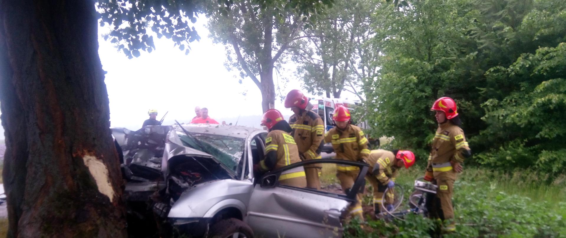 Po przybyciu na miejsce zdarzenia zastępów jednostek ochrony przeciwpożarowej stwierdzono, że samochód osobowy marki Opel Vectra uderzył w drzewo. W pojeździe znajdowały się dwie osoby. Działania zastępów straży pożarnej polegały na zabezpieczeniu miejsca zdarzenia, wykonaniu dostępu do osób poszkodowanych przy pomocy narzędzi hydraulicznych i przekazaniu ich ZRM. Obecny na miejscu działań kierownik Zespołu Ratownictwa Medycznego po ocenie stanu poszkodowanego kierowcy oraz pasażera pojazdu osobowego, podjął decyzję o odstąpieniu od działań medycznych.