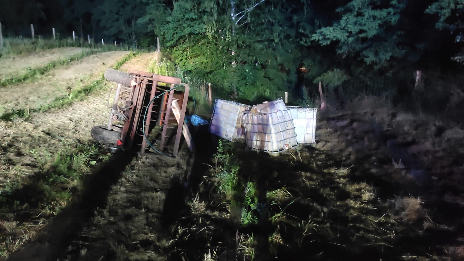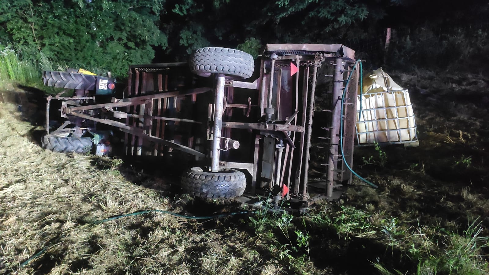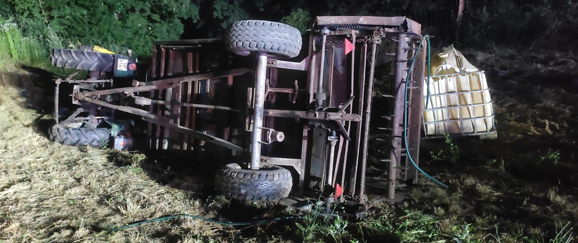 Po przybyciu na miejsce zdarzenia zastępów straży pożarnej stwierdzono, że podczas prowadzonych prac polowych doszło do zdarzenia z udziałem ciągnika rolniczego Ursus C-330. Mężczyzna nadal znajdował się pod pojazdem. Działania zastępów straży pożarnej polegały na zabezpieczeniu miejsca zdarzenia oraz uniesieniu ciągnika przy pomocy poduszek pneumatycznych na wysokość umożliwiającą ewakuację mężczyzny. Po wyciągnięciu poszkodowanego spod pojazdu został on przekazany Zespołowi Ratownictwa Medycznego. Dalsze działania zastępów straży pożarnej polegały na oświetleniu miejsca zdarzenia w trakcie czynności dochodzeniowych prowadzonych przez Policję.