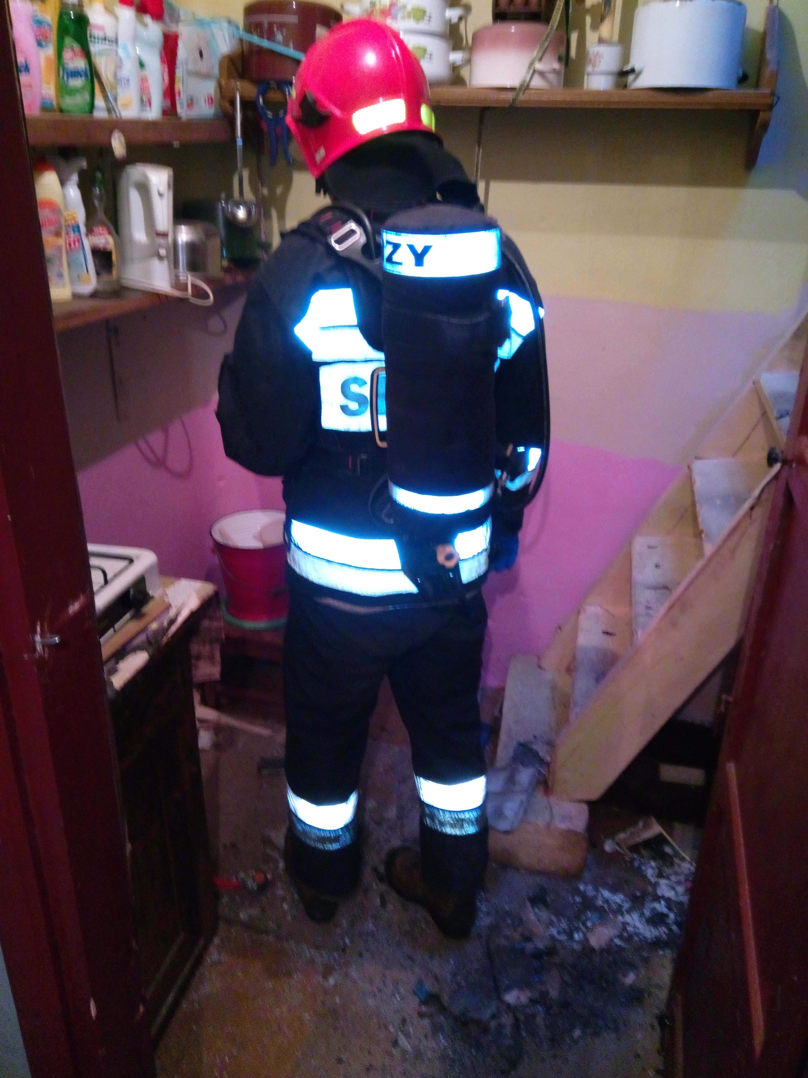Po dojeździe na miejsce zdarzenia zastępów straży pożarnej stwierdzono, że prawdopodobnie w następstwie rozszczelnienia połączenia butli 11 kg propan-butan z kuchenką doszło do wybuchu i uszkodzenia części dachu w budynku mieszkalnym. W wyniku zdarzenia poszkodowany został mężczyzna. Po przebadaniu przez Zespół Ratownictwa Medycznego został zabrany do szpitala. Działania straży pożarnej polegały na zabezpieczeniu miejsca zdarzenia, wyniesieniu i sprawdzeniu szczelności butli gazu propan-butan na zewnątrz budynku oraz sprawdzeniu przy pomocy sprzętu pomiarowego stężenia gazów niebezpiecznych w pomieszczeniach.