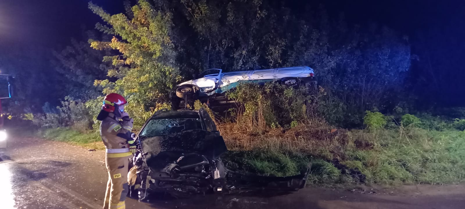 Po dojeździe na miejsce zdarzenia zastępów straży pożarnej stwierdzono zderzenie samochodu osobowego z dostawczym, samochód osobowy znajdował się na pasie jezdni częściowo go blokując a dostawczy leżał na boku na poboczu drogi. Kierujący oraz pasażerka Volvo opuścili pojazd o własnych siłach przed przybyciem JOP, a kierowca Renault znajdował się w środku pojazdu. Działania zastępów straży pożarnej polegały na zabezpieczeniu miejsca zdarzenia, odłączeniu akumulatorów w obu pojazdach, udzieleniu KPP uczestnikom zdarzenia. Po przebadaniu przez ratowników medycznych, kierujący Volvo został zabrany do szpitala a pozostali uczestnicy zdarzenia pozostali na miejscu. Dalsze działania JOP polegały na oświetleniu terenu działań w trakcie prowadzonych czynności dochodzeniowych przez Policję. W działaniach trwających blisko 6 godzin udział brał zastęp JRG Sandomierz, OSP Sobótka i Komendant Powiatowy PSP w Opatowie.