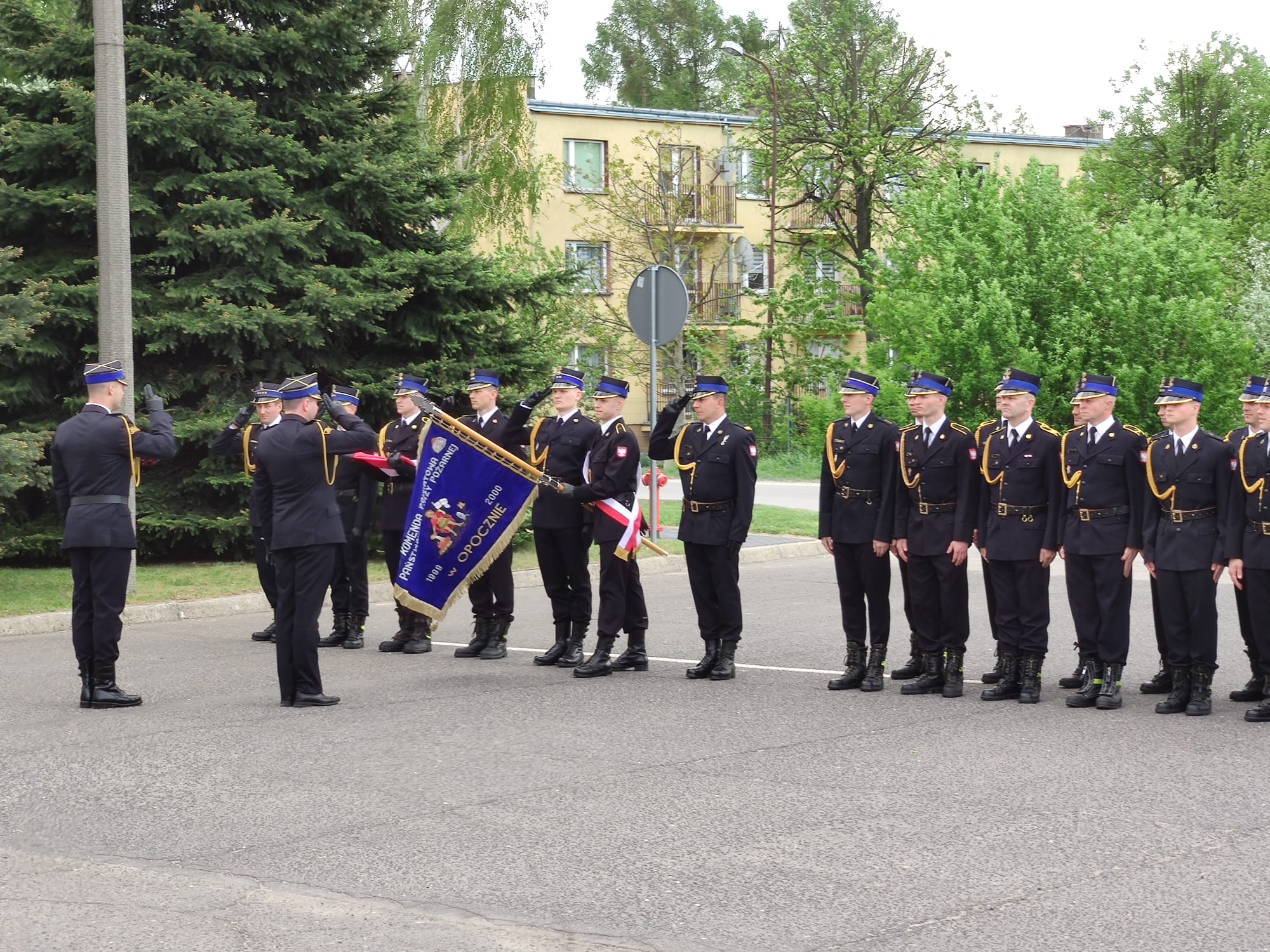 Uroczysta zbiórka rozpoczęła się od złożenia meldunku st. bryg. Sebastianowi Kościstemu Zastępcy Łódzkiego Komendanta Wojewódzkiego PSP przez dowódcę uroczystości st. kpt. Macieja Połeć. Po odegraniu hymnu i podniesieniu flagi państwowej na maszt st. bryg. Andrzej Śpiewak Komendant Powiatowy PSP w Opocznie przywitał zaproszonych gości oraz wygłosił okolicznościowe przemówienie.