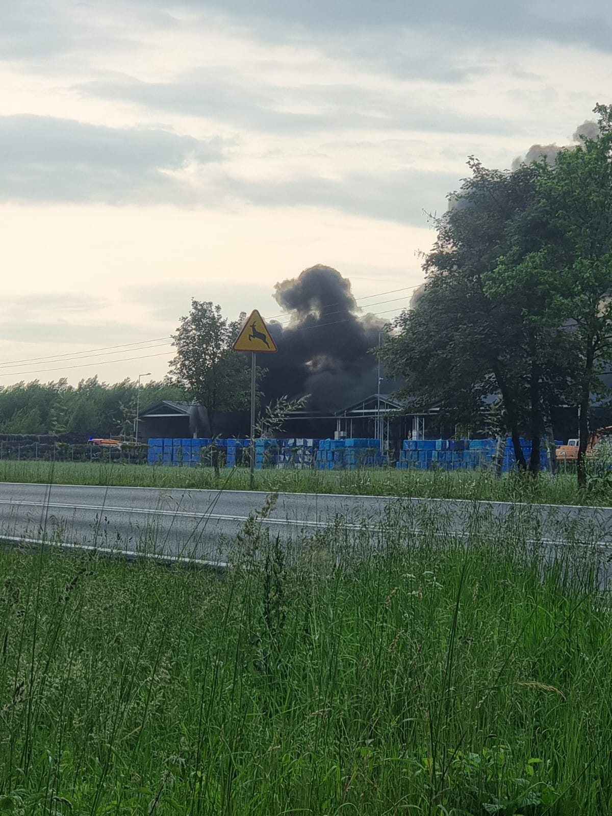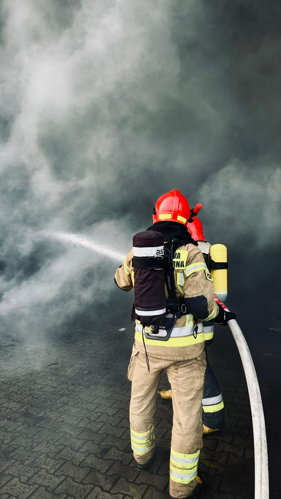 Pożar wiaty magazynowej na terenie zakładu recyklingu i utylizacji opon