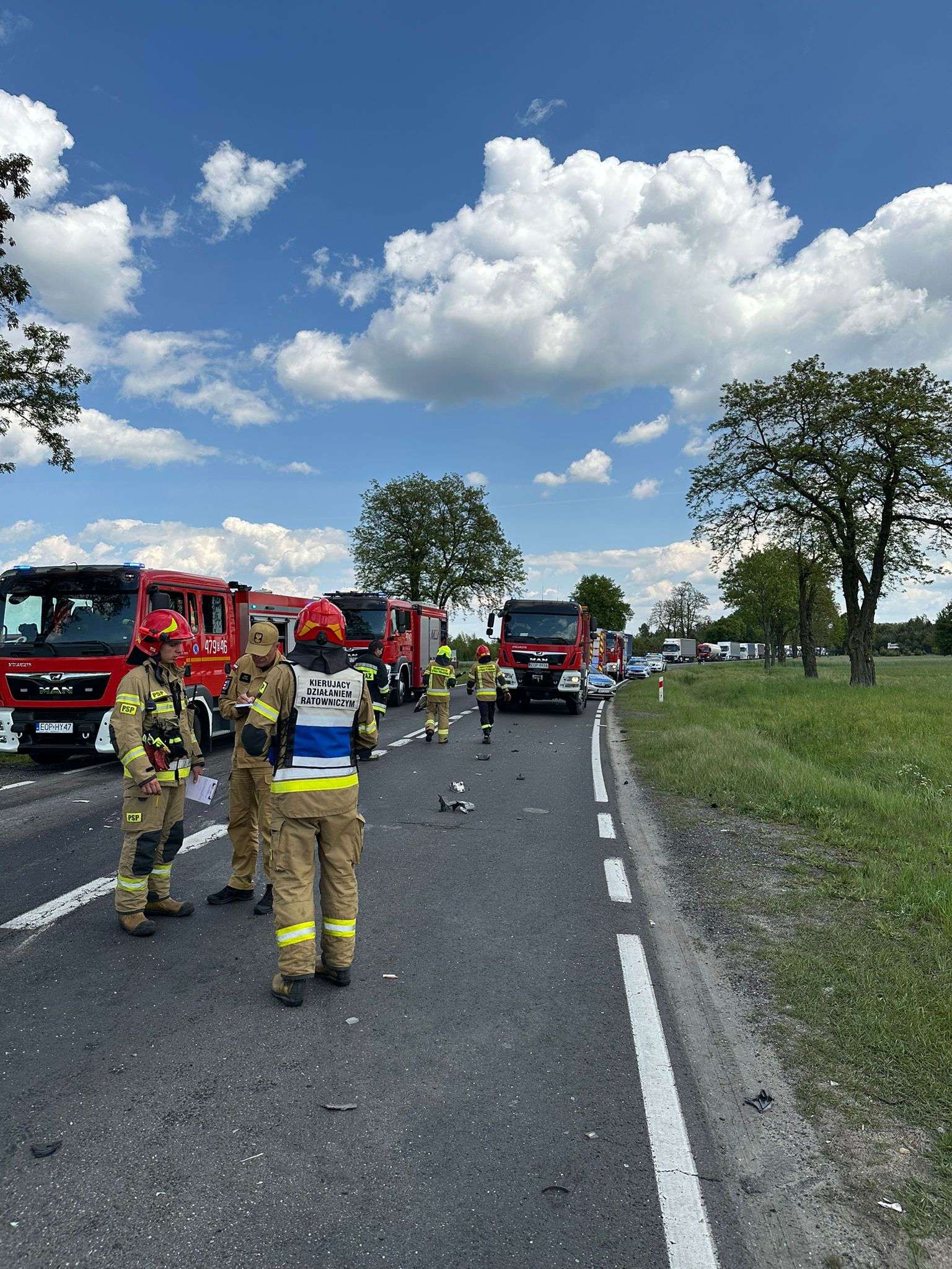 W dniu 21 maja na DK12 w miejscowości Strzelce, gm. Mniszków, powiat opoczyński doszło do wypadku drogowego z udziałem dwóch sam. osobowych i dwóch sam. ciężarowych. Na miejsce zdarzenia zadysponowano trzy zastępy PSP JRG Opoczno, zastęp PSP JRG Piotrków Trybunalski oraz pięć zastępów OSP. Działania zastępów polegały na zabezpieczeniu miejsca zdarzenia, wykonaniu dostępu do osoby poszkodowanej przy pomocy narzędzi hydraulicznych i wydobyciu na noszach typu deska w obecności Zespołu Ratownictwa Medycznego. Zabezpieczeniu miejsca lądowania i startu śmigłowca LPR oraz przeprowadzeniu rozpoznania wśród pozostałych uczestników zdarzenia celem udzielenia kwalifikowanej pomocy przedmedycznej. Sorpcja plamy płynów eksploatacyjnych powodujących śliskość oraz uprzątnięciu jezdni po wypadku drogowym.