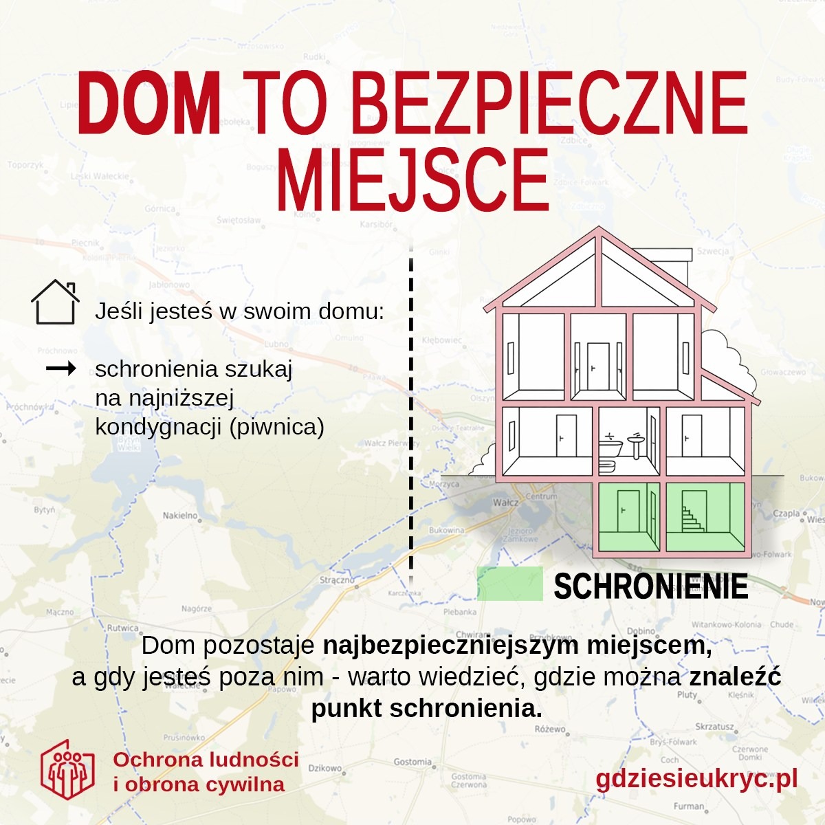 „Gdzie się ukryć” to nowoczesne i przyjazne narzędzie, które może posiadać każdy obywatel. Zostało zaprojektowana z myślą o prostocie i skuteczności: wystarczy telefon komórkowy typu smartfon by w sytuacji nagłego zagrożenia – np. bardzo silnego wiatru czy potencjalnych zagrożenie środkami napadu powietrznego – szybko odnaleźć najbliższe Punkty Schronienia (PS) oraz uruchomić nawigację na mapie. Co ważne, po wcześniejszym pobraniu danych aplikacja działa również w trybie offline.