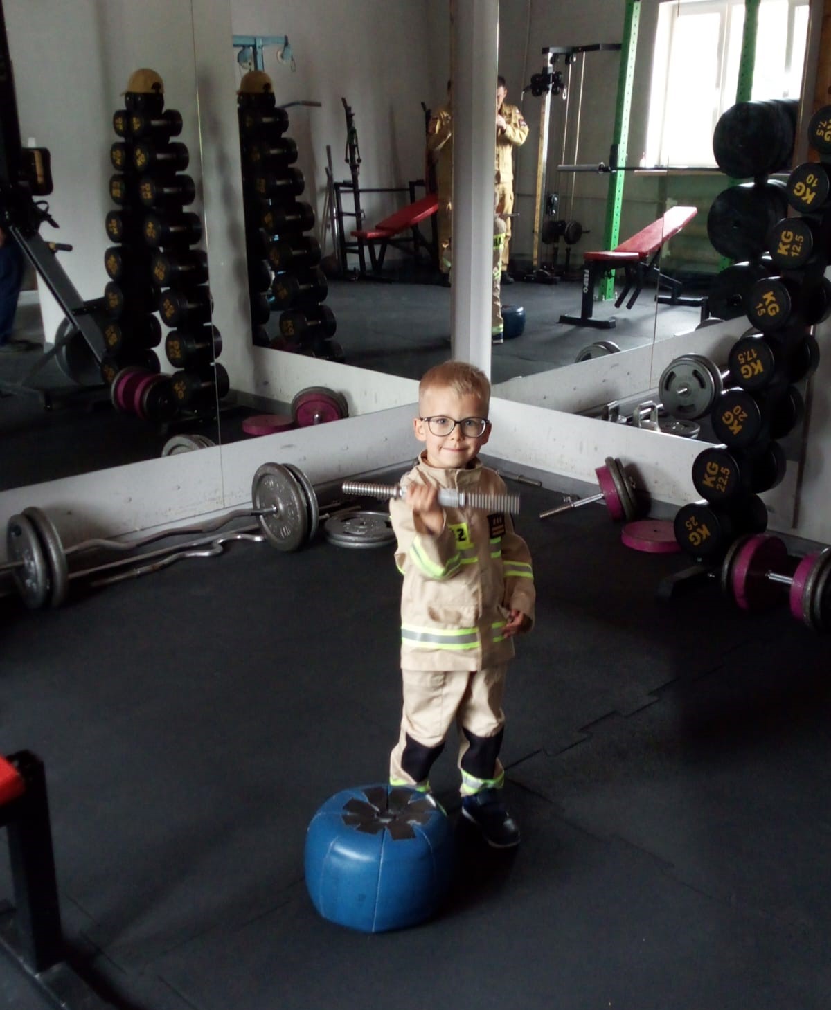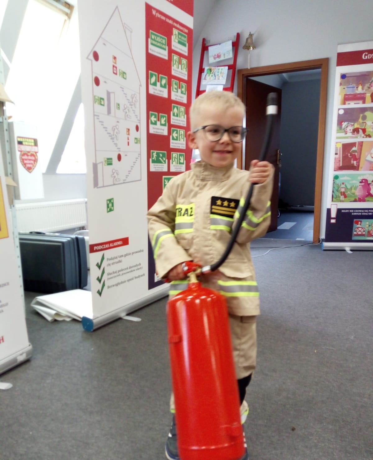 Na koniec wizyty Bartek otrzymał symboliczne upominki, a także zaproszenie do służby w PSP już za kilkanaście lat.