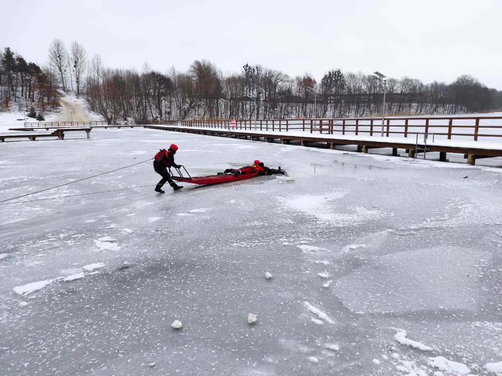 Strażacy z ostródzkiej Komendy Powiatowej PSP są bardzo dobrze przygotowani na wypadek zdarzeń związanych z załamaniem się lodu. Sukcesywnie ćwiczą podejmowanie ludzi z akwenów pokrytych lodem. Podczas takich ćwiczeń stale im towarzyszy hasło: „…obyśmy nie musieli prowadzić takiej akcji w realnym zdarzeniu”.