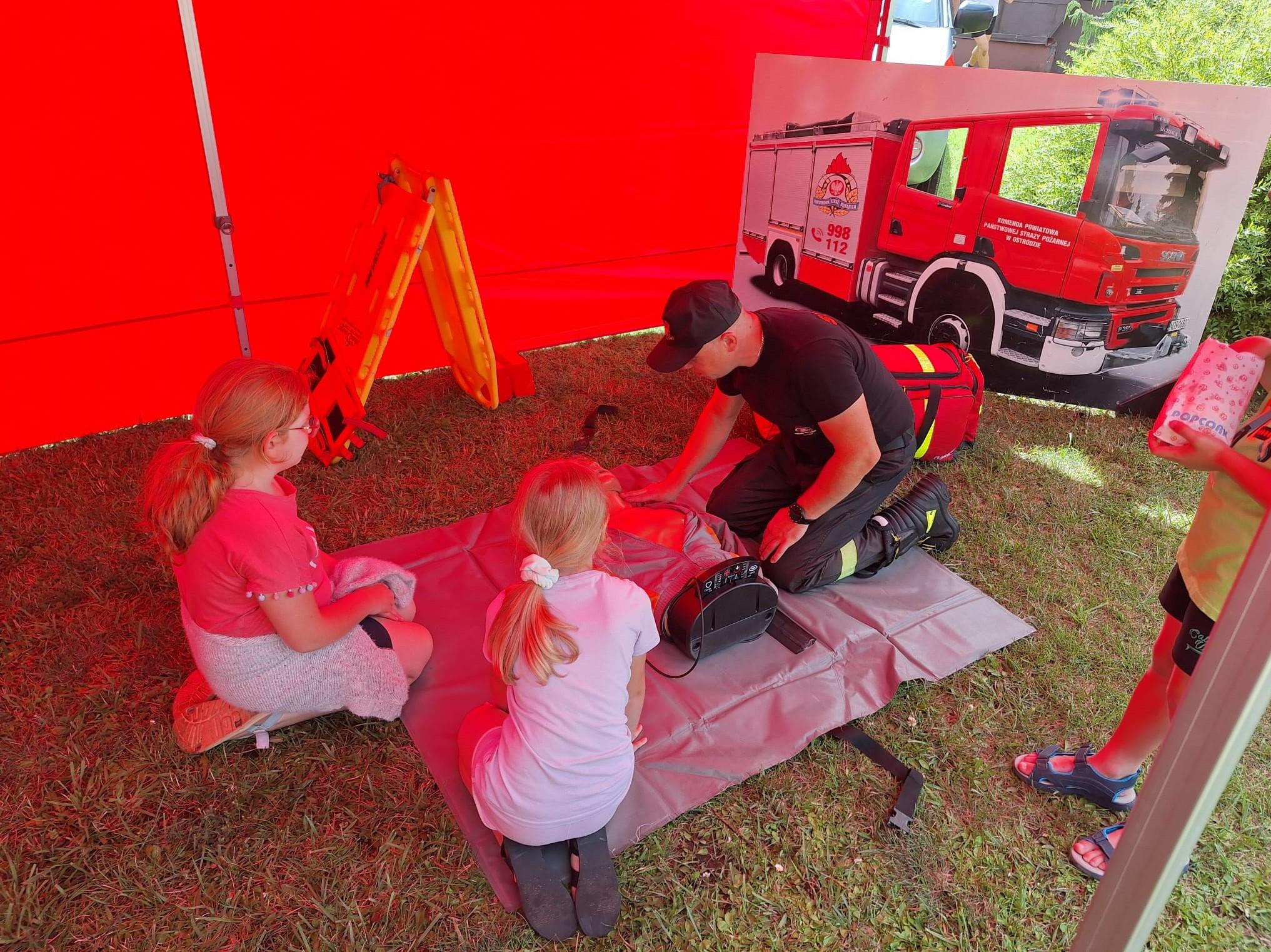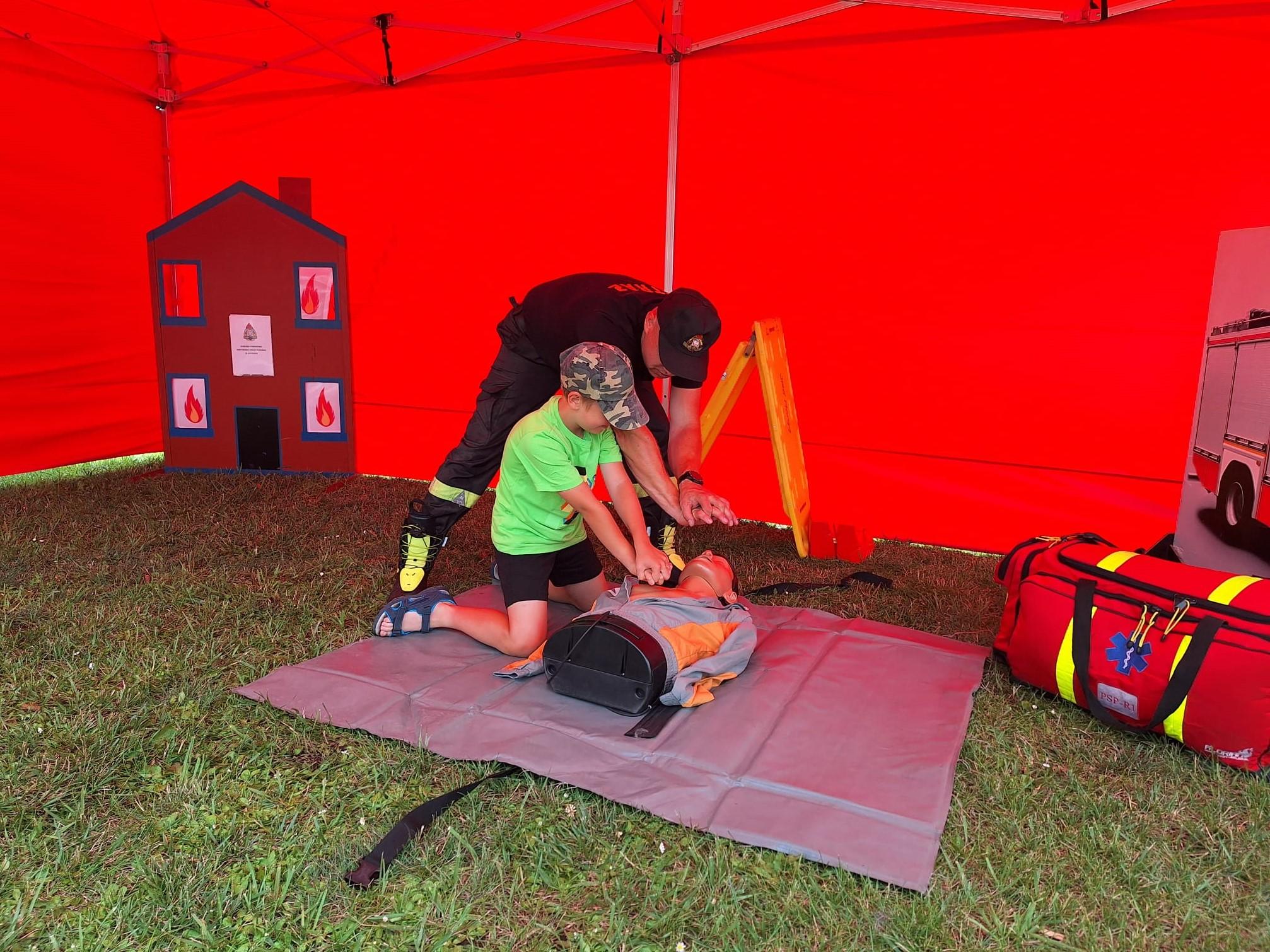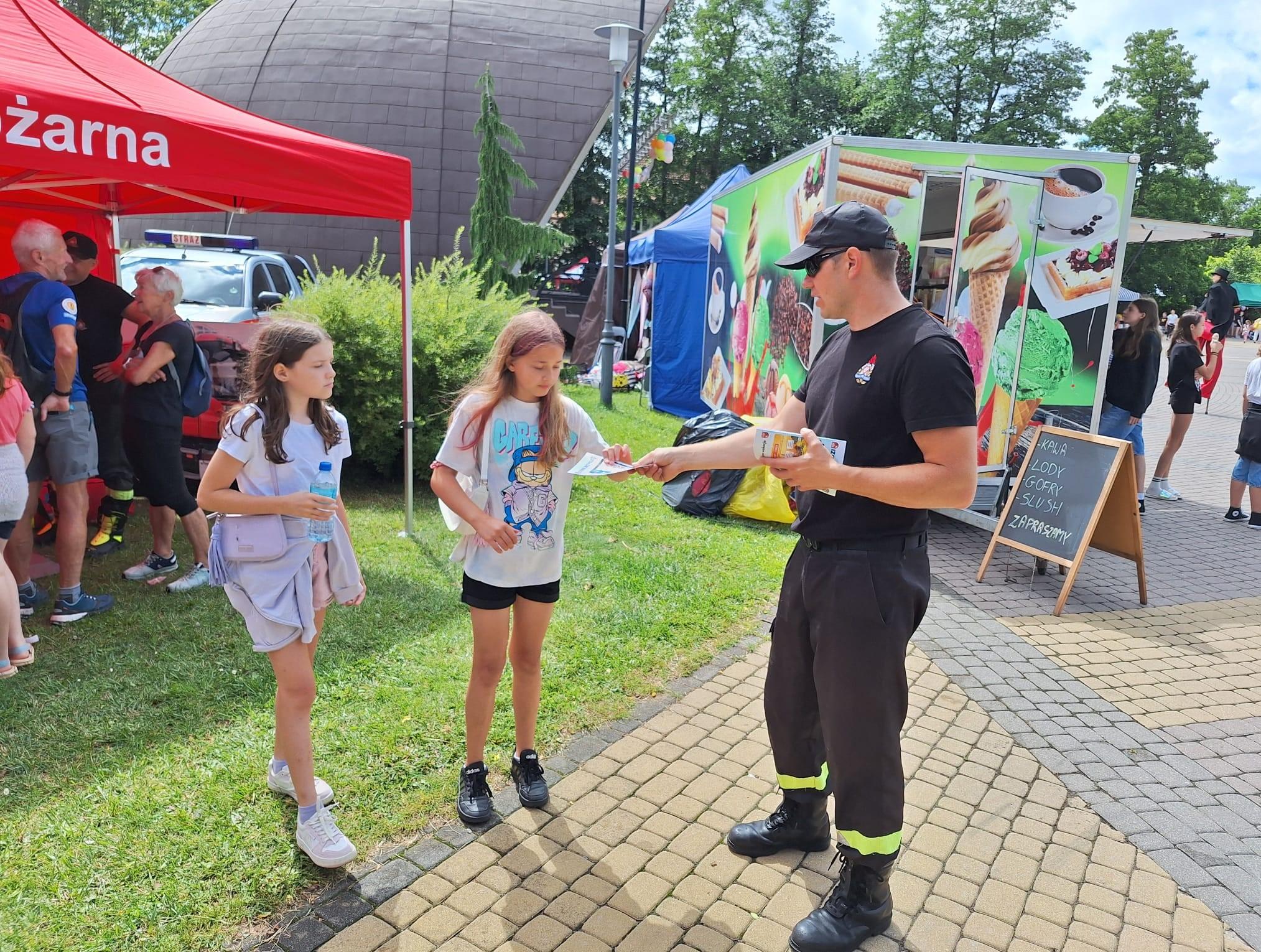 Oprócz rozmów strażacy rozdali ulotki z informacjami jak bezpiecznie wypoczywać podczas wakacji, a także zaprezentowali sprzęt, którym posługują się na co dzień oraz udzielali instruktażu z kwalifikowanej pierwszej pomocy.