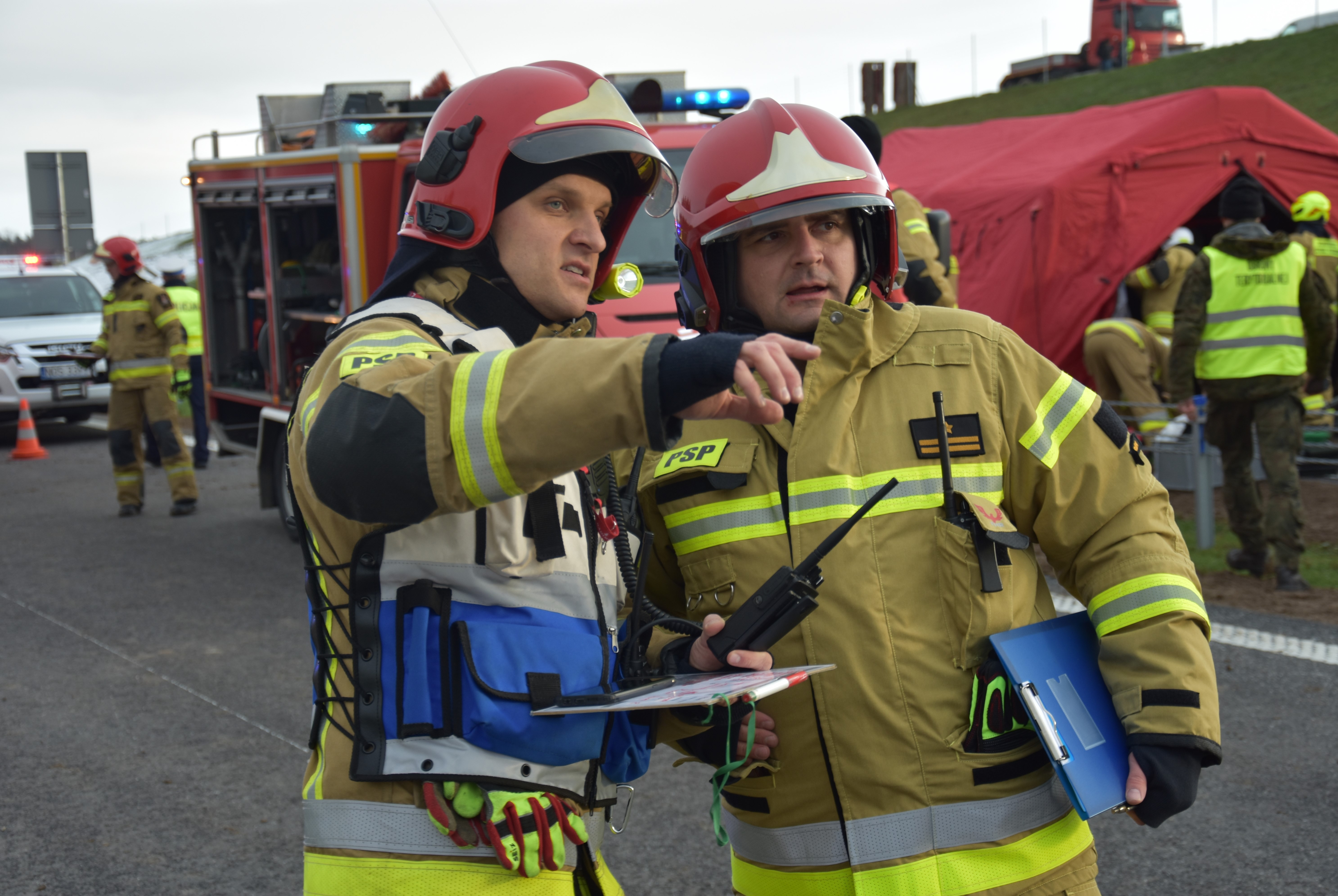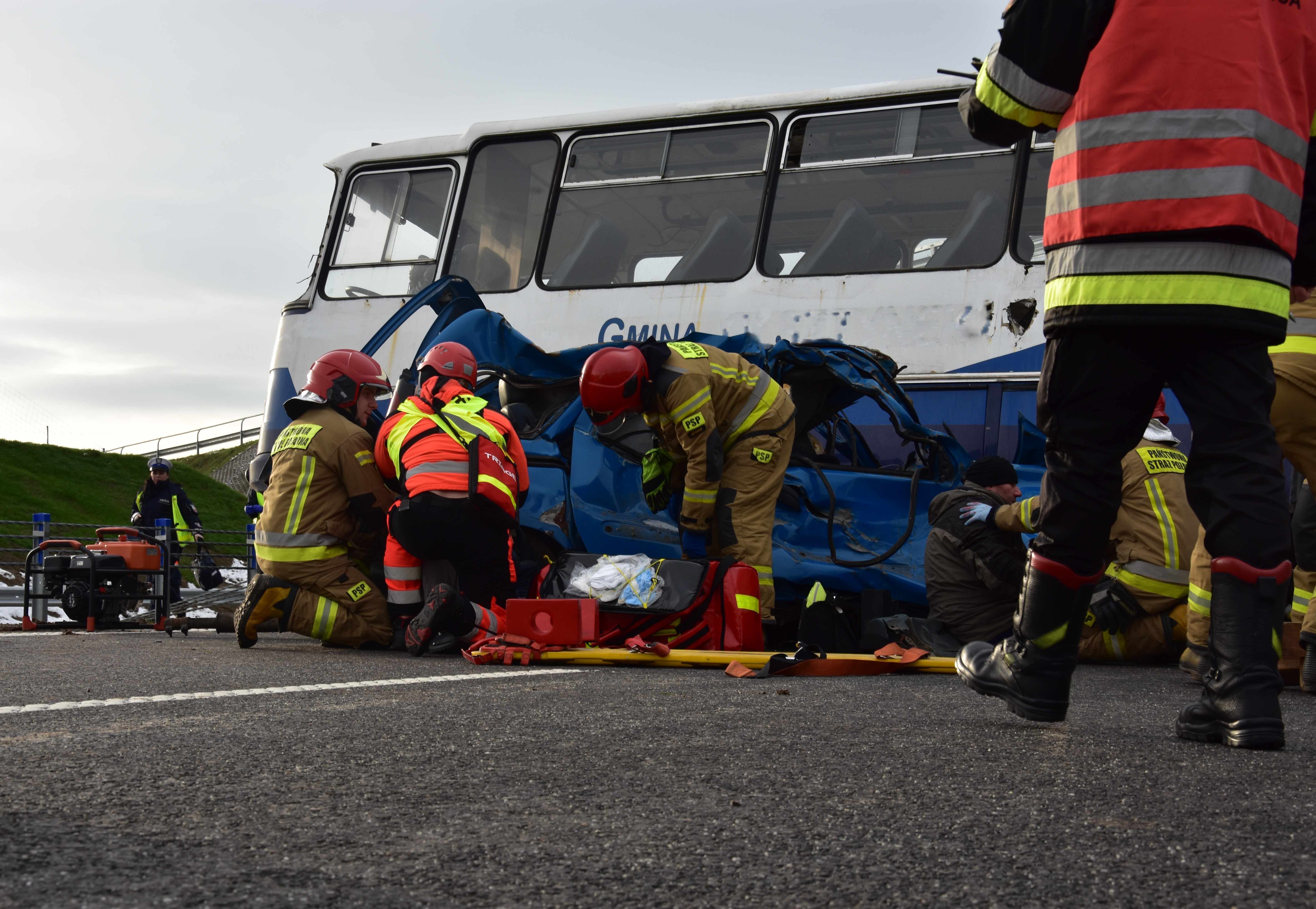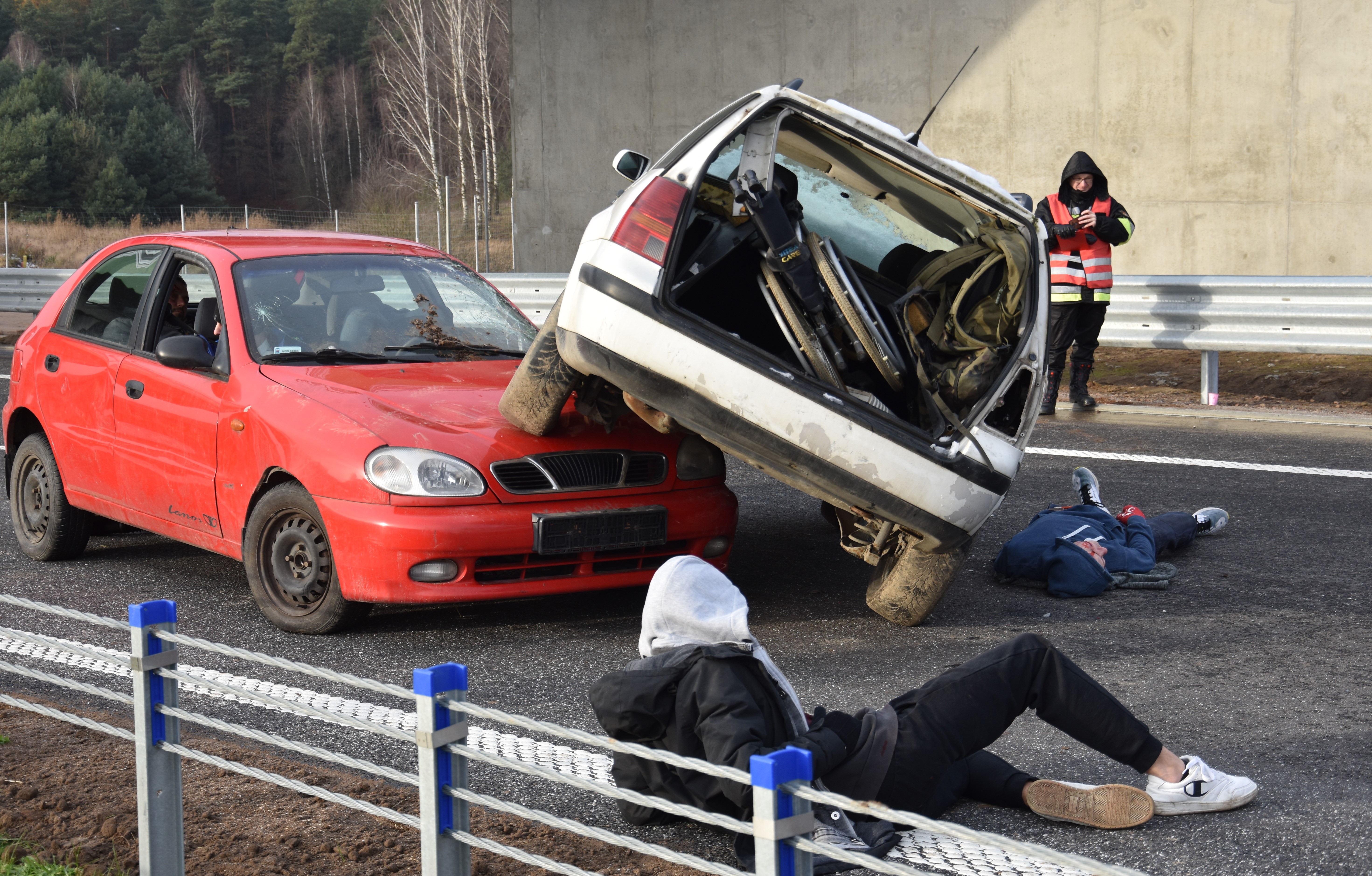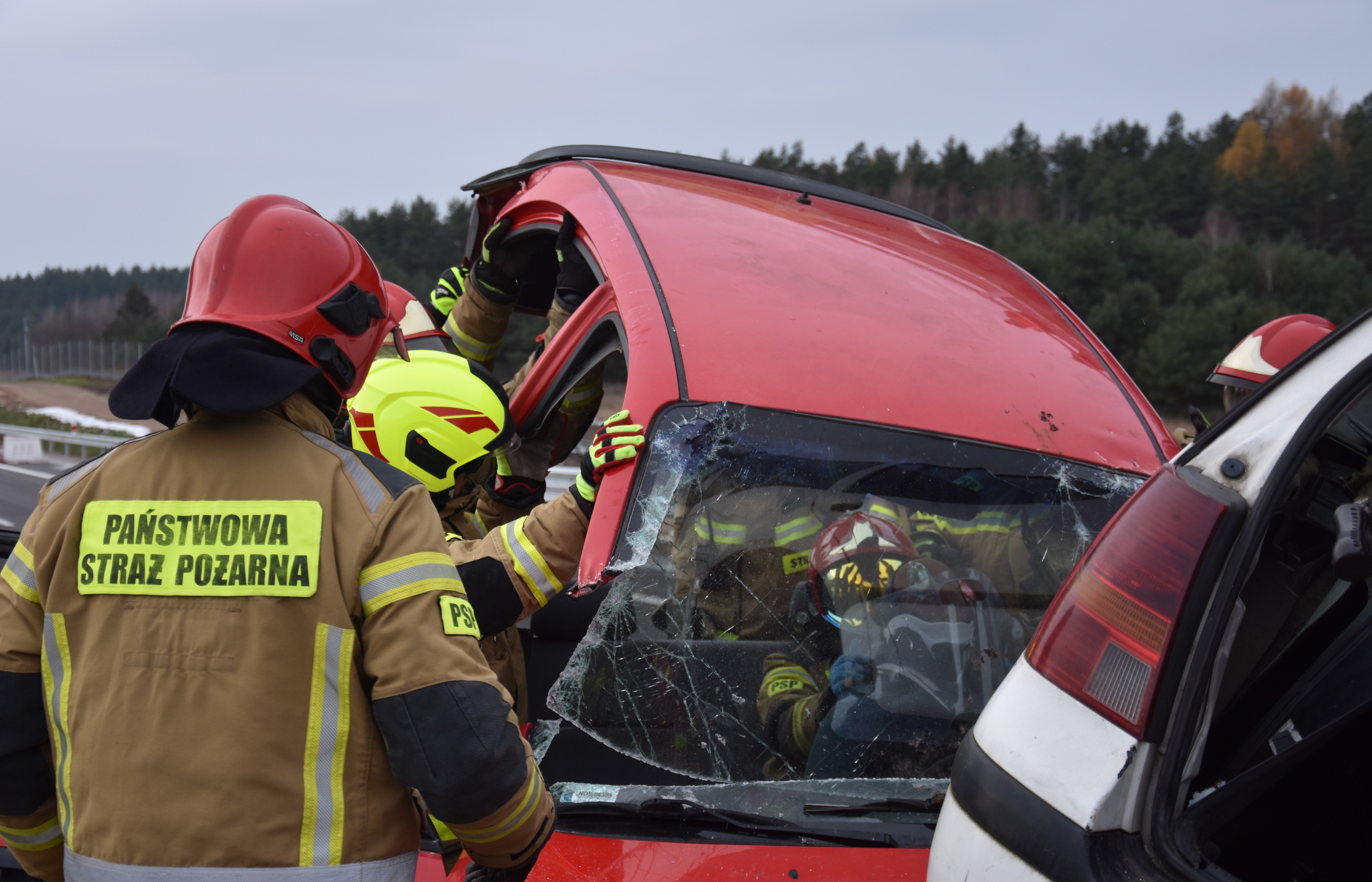 Ósmego grudnia na nowym odcinku drogi ekspresowej S5 odbyły się ćwiczenia współdziałania służb ratowniczych organizowane przez Komendę Powiatową PSP w Ostródzie we współpracy ze Starostwem Powiatowym oraz Gminą Wiejską Ostróda. Scenariusz ćwiczeń zakładał pozorowany wypadek z udziałem autobusu oraz trzech samochodów osobowych. W wyniku tego zdarzenia obrażeń doznało 27 osób. Zdarzenie zostało zgłoszone telefonicznie przez osobę postronną podróżująca nową drogą ekspresową. Dyżurny Stanowiska Kierowania Komendanta Powiatowego PSP w Ostródzie zadysponował na miejsce zdarzenia samochody z jednostki ratowniczo-gaśniczej w Ostródzie i Morągu oraz Ochotniczych Straży Pożarnych w: Ostródzie, Samborowie, Reszkach, Smykówku i Turznicy. Na miejsce akcji wyjechały także dwa patrole policji oraz trzy zespoły ratownictwa medycznego. Tą samą drogą przemieszczał się pododdział żołnierzy Wojsk Obrony Terytorialnej z Morąga. Dowódca WOT zaoferował służbom ratowniczym pomoc. Kierujący działaniami ratowniczymi mł. bryg. Marcin Wiśniewski po rozpoznaniu sytuacji przydzielił zadania zastępom pożarniczym i służbom współdziałającym. Wypadek miał charakter zdarzenia masowego, to oznacza, że występował deficyt ratowników względem osób poszkodowanych. Dowódca akcji zażądał zadysponowania kolejnych sił i środków. Działania ratownicze prowadzone były wielopłaszczyznowo. Niezbędne było przeprowadzenie przez ratowników medycznych procedury „triage”, która ma na celu możliwie najszybszą ocenę stanu poszkodowanych i nadanie im priorytetu ratowniczego w zależności od obrażeń. Na miejsce wypadku dostarczone zostały namioty pneumatyczne wraz z łóżkami polowymi, które stanowiły swoisty „szpital polowy”, czyli miejsce pracy ratowników medycznych, gdzie udzielano pierwszej pomocy i podejmowano decyzje o dalszym transporcie poszkodowanych do placówek medycznych. W dalszej fazie dowodzenie akcją przejął Komendant Powiatowy PSP w Ostródzie mł. bryg. Łukasz Jasiński, który w porozumieniu z przedstawicielami Powiatowego Zarządzania Kryzysowego polecił zorganizować dodatkowe miejsce schronienia dla poszkodowanych w szkole podstawowej w Samborowie. Dodatkowo zobligował żołnierzy WOT do rozstawienia zadysponowanych łóżek polowych oraz polecił przeszukać okolice miejsca zdarzenia w celu odnalezienia ewentualnych osób poszkodowanych, które mogły się oddalić w wyniku doznanego szoku. Ćwiczenia „Wypadek 2022” miały charakter zgrywający pracę służb ratowniczych w naszym powiecie. Ponadto pozwoliły uczestnikom na bliższe poznanie specyfiki zagrożeń w ruchu drogowym, w szczególności na trasach szybkiego ruchu. Dzięki takim symulowanym zdarzeniom wypracowywane są metody udoskonalające współpracę podmiotów przy realnych zdarzeniach. Ćwiczenia odbyły się dzięki uprzejmości Generalnej Dyrekcji Dróg Krajowych i Autostrad, generalnemu wykonawcy budowy odcinka drogi firmie „Budimex” oraz firmie "Stalzłom", która udostępniła pojazdy użyte do pozoracji wypadku.