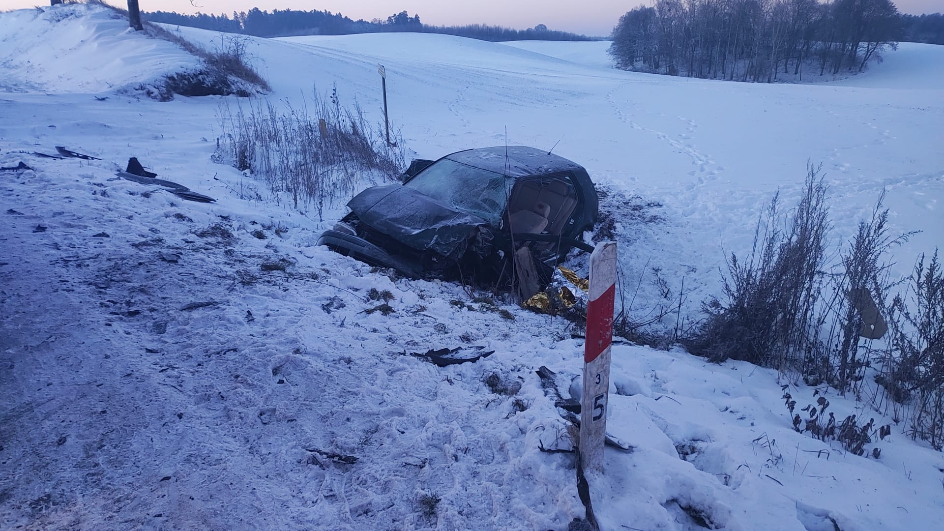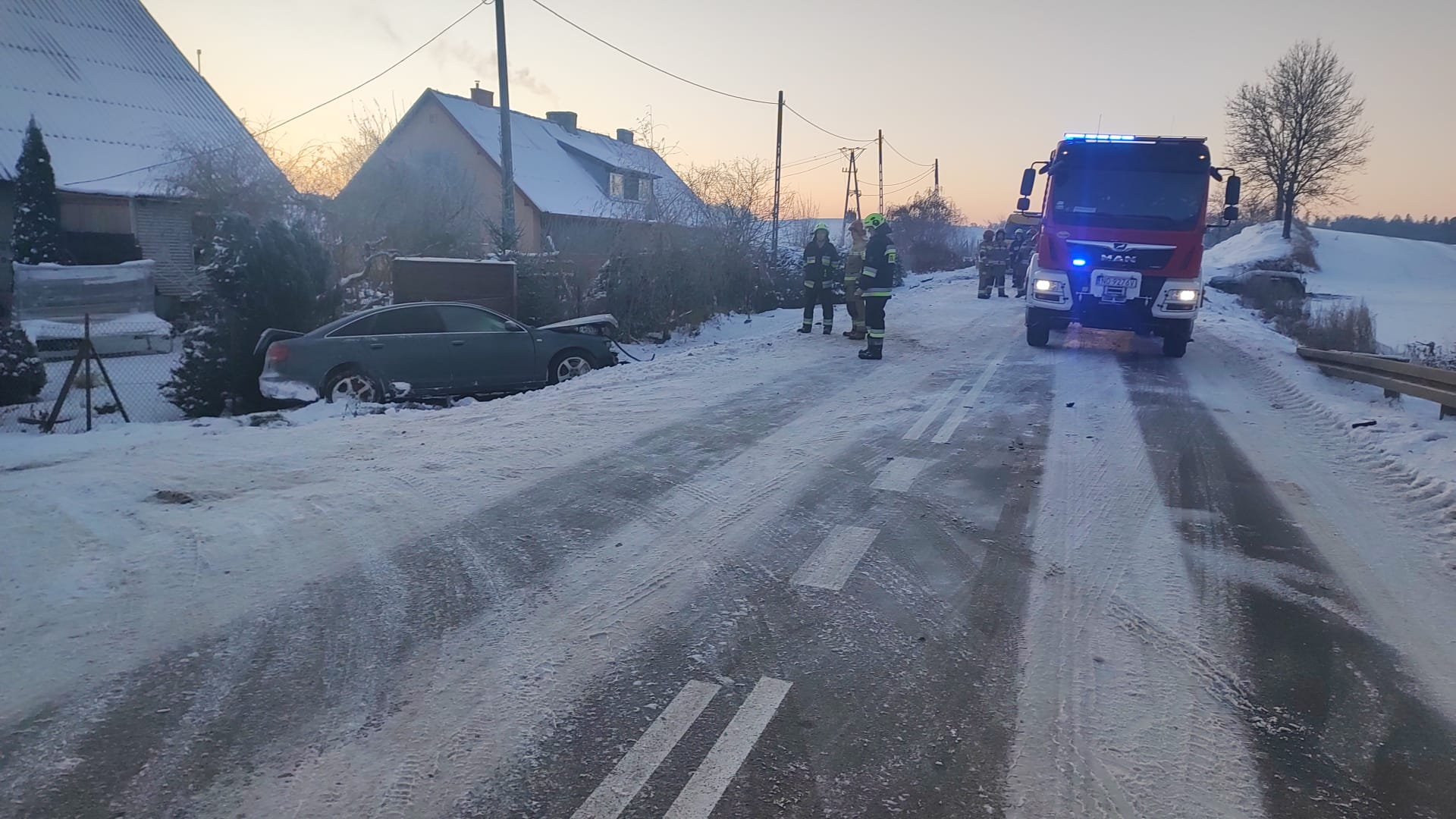 Kilkanaście minut przed godziną siódmą 14 grudnia doszło do czołowego zderzenia dwóch samochodów osobowych na drodze wojewódzkiej nr 542 w miejscowości Wróble. W wyniku zdarzenia mężczyzna kierujący samochodem osobowym marki Audi nie doznał obrażeń, natomiast kobieta kierująca pojazdem Volkswagen pozostawała uwięziona w pojeździe. Do akcji ratowniczej z ostródzkiej JRG wyjechały dwa samochody ratowniczo-gaśnicze. Dyspozycję wyjazdu otrzymały również zastępy Ochotniczej Straży Pożarnej z Frygnowa i Gierzwałdu. Strażacy na miejscu wypadku zastali poważnie rozbite pojazdy. Przystąpili do udzielania kwalifikowanej pierwszej pomocy medycznej rannej kobiecie. Równolegle przy pomocy ratowniczych narzędzi hydraulicznych wykonali dostęp do poszkodowanej. Niezbędne było wycięcie oraz rozparcie elementów karoserii pojazdu, aby umożliwić ewakuację rannej kobiety z rozbitego auta. Ponadto strażacy zabezpieczyli operację lądowania i startu śmigłowca HEMS, który przetransportował poszkodowaną do Szpitala.