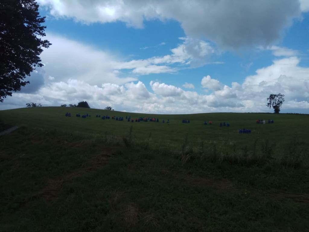 Wypadek wydarzył się w okolicy miejscowości Ryńskie. Do akcji ratowniczej z ostródzkiej JRG wyjechały dwa samochody ratowniczo-gaśnicze i samochód operacyjny. Strażacy na miejscu wypadku zastali samochód dostawczy, który leżał na dachu w rowie. Wokół pojazdu i na jezdni leżało kilkadziesiąt butli z gazem propan-butan. Kierujący samochodem mężczyzna znajdował się poza pojazdem. Uskarżał się na dolegliwości bólowe, które wskazywały, że mógł doznać urazu kręgosłupa. Strażacy udzieli poszkodowanemu pomocy medycznej i równolegle sprawdzili stan butli z gazem. Teren zdarzenia został zbadany detektorem wielogazowym. Nie stwierdzono wycieku gazu. Strażacy przenieśli 74 butle na pobliskie pole uprawne, na bezpieczną odległość od miejsca zdarzenia. Butle tam zostały ponownie sprawdzone. Nie stwierdzono uszkodzeń zbiorników. Droga Krajowa nr 15 była zablokowana blisko 2 godziny.