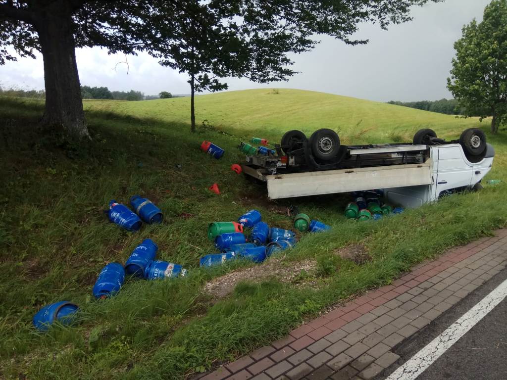 Kilka minut przed godziną 12:00 8 lipca, na DK 15 doszło do dachowania samochodu dostawczego przewożącego butle z gazem.