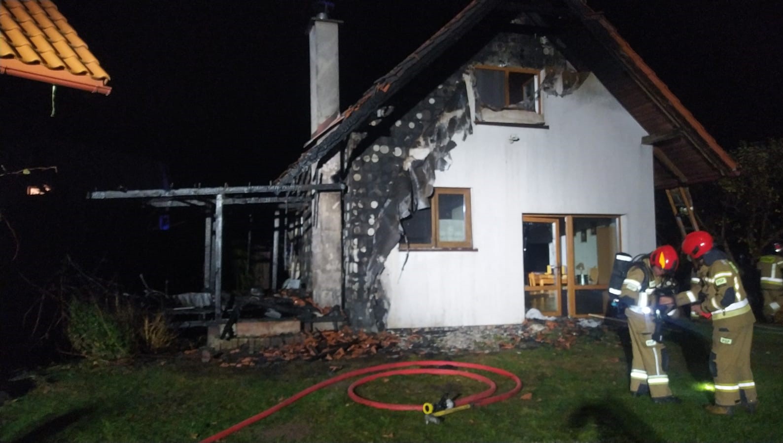 Jedno ze zdarzeń dotyczyło pożaru budynku mieszkalnego w miejscowości Wynki (gmina Łukta). Na miejscu strażacy zastali pożar tarasu, który rozprzestrzeniał się po elewacji budynku. Strażacy podali 2 prądy wody: w natarciu na palący się budynek oraz obronie na sąsiedni dom jednorodzinny. W działaniach udział brało 8 zastępów jednostek ochrony przeciwpożarowej tj. z Jednostek Ratowniczo-Gaśniczych w Ostródzie i Morągu oraz Ochotnicze Staże Pożarne z Łukty (3 zastępy) i Worlin.