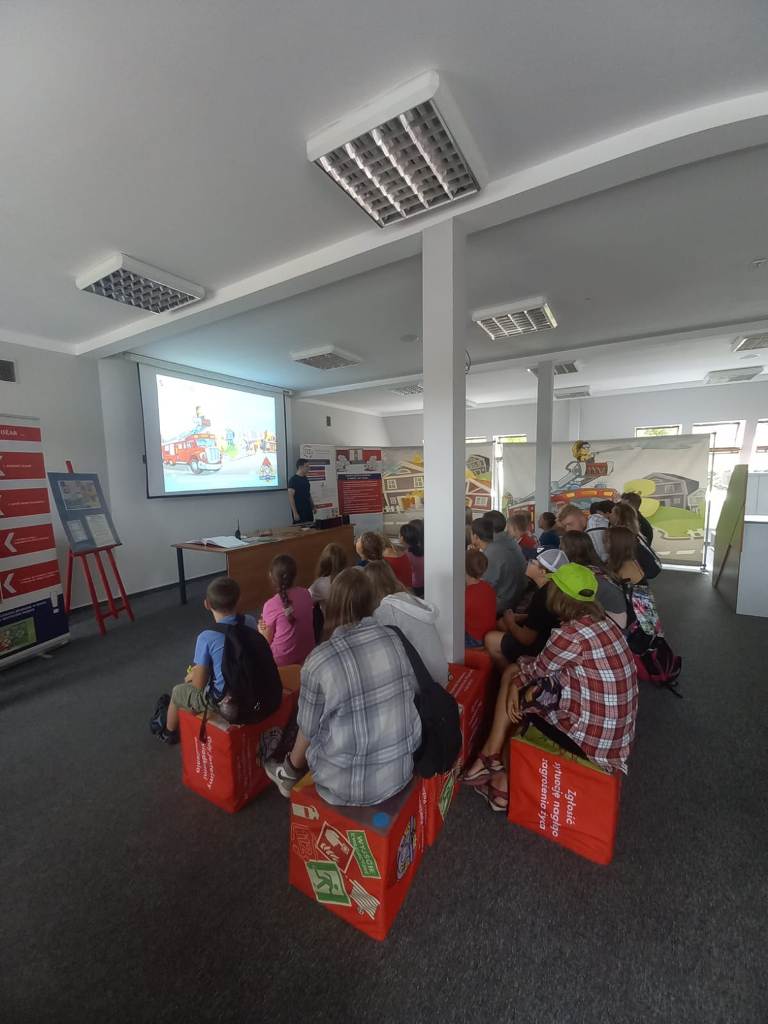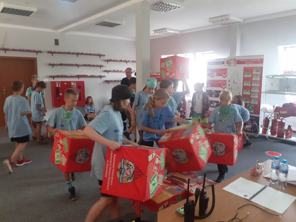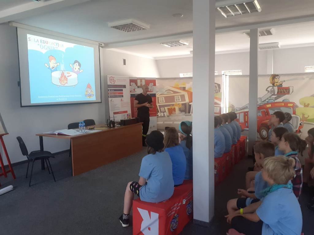 Ostródzką Komendę Powiatową Państwowej Straży Pożarnej odwiedziły trzy grupy dzieci z Ukrainy w towarzystwie polskich kolegów. W dniach 16, 17 i 18 sierpnia trzydziestoosobowe grupy dzieci, które wypoczywają na obozie harcerskim w Wińcu – gm. Miłomłyn, wzięły udział w zajęciach w sali edukacyjnej „Ognik” ostródzkiej Komendy Powiatowej PSP. To pierwszy raz, gdy strażacy z Ostródy mieli okazję poprowadzić zajęcia prewencji społecznej w międzynarodowym wydaniu. Dzieci były bardzo zainteresowane atrakcjami, jakie oferuje nasza sala „Ognik”. Zadawały wiele pytań, a bariera językowa zupełnie nie stanowiła problemu. Każdego dnia z wielką radością gościliśmy grupy dzieci na wspólnej edukacyjnej zabawie. Uśmiechy dzieci i wiele podziękowań, przybitych „piątek” i „żółwików” to najwspanialsza nagroda, jaką otrzymali strażacy, którzy prowadzili zajęcia.