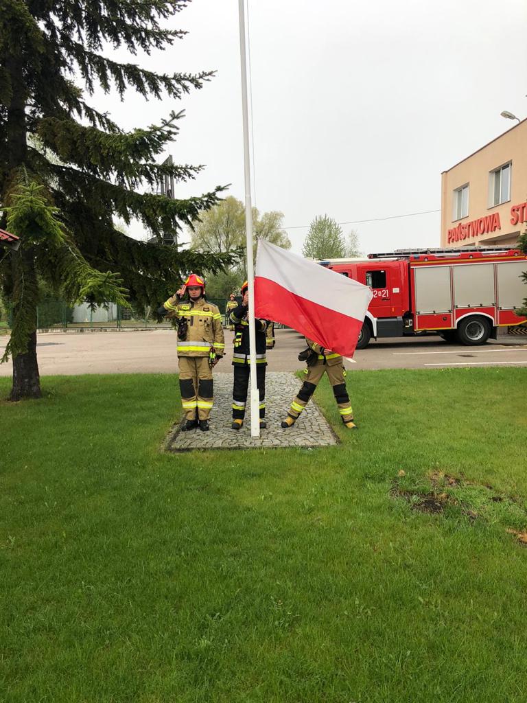 Co roku gromadziliśmy się, aby uroczyście podnieć naszą flagę narodową na maszt przy dźwiękach „Mazurka Dąbrowskiego”. Ten rok pod tym względem jest inny. Z uwagi na pandemię koronawirusa i stan epidemii w kraju, świętowanie naszych barw narodowych miało odmienny charakter. Nie było tradycyjnego spotkania załogi z komendantem i uroczystego apelu. Jednak Flaga państwowa to wyjątkowy symbol, który napawa dumą i daje siłę do realizacji obowiązków służbowych, zwłaszcza w trudnym okresie epidemii. Strażacy z ostródzkiej Komendy Powiatowej Państwowej Straży Pożarnej w skromny, symboliczny sposób podczas zmiany służby w jednostkach ratowniczo-gaśniczych w Ostródzie i Morągu oddali cześć „biało czerwonej”. Z zachowaniem reżimów sanitarnych, bez akompaniamentu hymnu, z honorami podniesiono Flagę Rzeczypospolitej Polskiej.