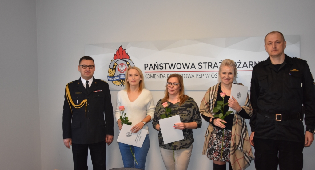Dzień 11 listopada ustanowiony jest Dniem Służby Cywilnej, który podkreśla znaczenie administracji państwowej. W Komendzie Powiatowej Państwowej Straży Pożarnej zatrudnione są Panie w ramach Korpusu Służby Cywilnej. Realizują one zadania w sekcji finansów oraz w sekcji kadrowo-organizacyjnej. W przededniu ich święta 10 listopada ostródzki Komendant Powiatowy PSP st. bryg. Tomasz Ostrowski w asyście swojego Zastępcy st. kpt. Rafała Napiórkowskiego i funkcjonariuszy komendy złożył gratulacje i podziękowania za szczególny wkład pracy, zaangażowanie w realizację powierzonych obowiązków i wzorowe ich wykonywanie. Panie otrzymały listy gratulacyjne, a także zostały wyróżnione nagrodami finansowymi. Serdecznie gratulujemy.