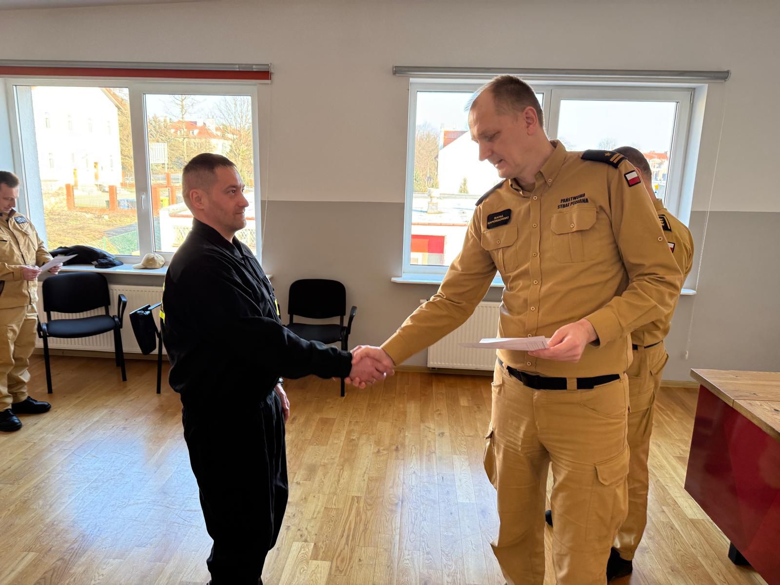 Wszyscy druhowie ukończyli szkolenie z wynikiem pozytywnym i otrzymali z rąk Komendanta Powiatowego PSP w Ostródzie mł. bryg. Rafała Napiórkowskiego zaświadczenia potwierdzające ukończenie kursu.