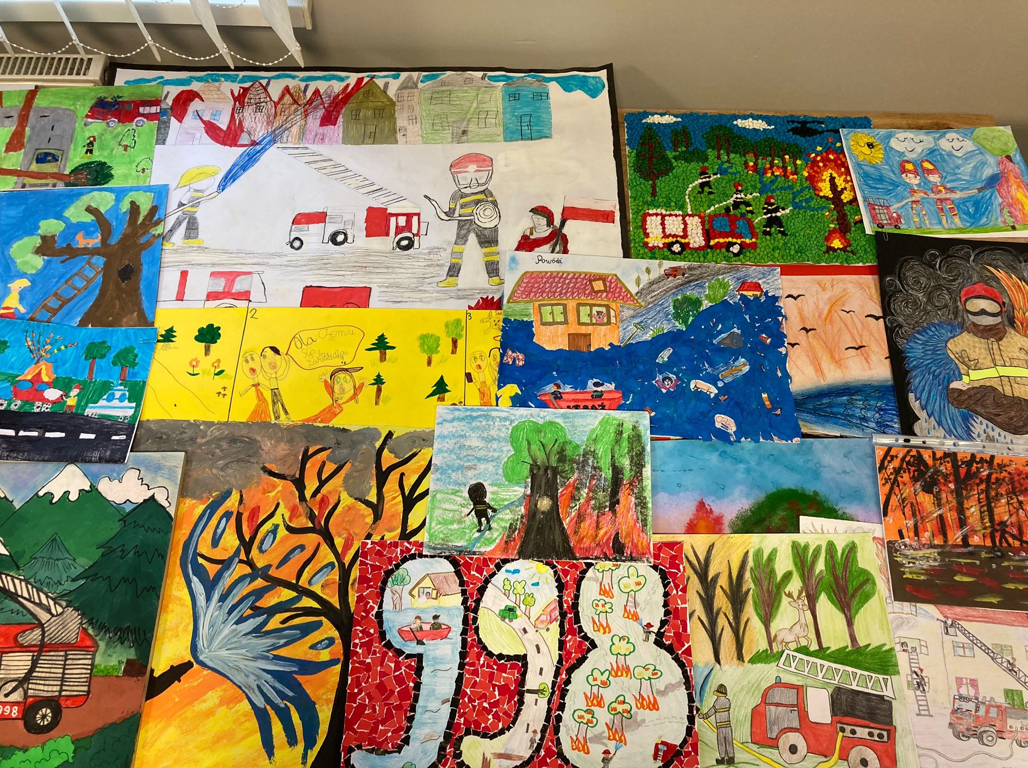 Komisja jak każdego roku nie miała łatwego zadania. Tematykę zapobiegania pożarom uczestnicy konkursu przedstawili, wykorzystując do tego różne techniki plastyczne. Artyści wykonali znakomicie uchwycone elementy pracy strażaków. Prace przedstawiały pełny wachlarz zadań, jakie strażacy wykonują w codziennej służbie. Gratulujemy laureatom i życzymy powodzenia w eliminacjach wojewódzkich.
