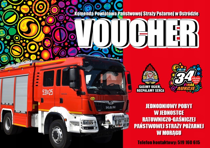 Spędzenie dnia ze strażakami w Jednostce Ratowniczo-Gaśniczej w Ostródzie w wybranym przez siebie terminie - aukcja na portalu Allegro do 31.01.2026r.