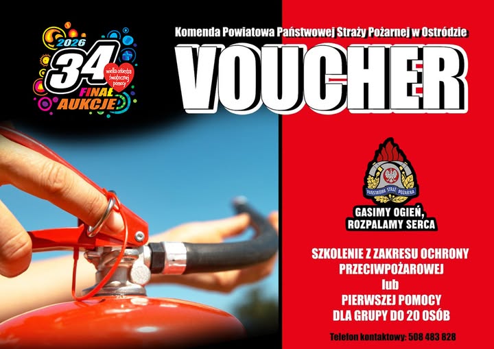 Szkolenie z tematyki ochrony przeciwpożarowej dla wybranej grupy osób (firmy, instytucji, urzędu) dla grupy do 20 osób w wybranym przez siebie terminie - aukcja na portalu Allegro do 31.01.2026r.