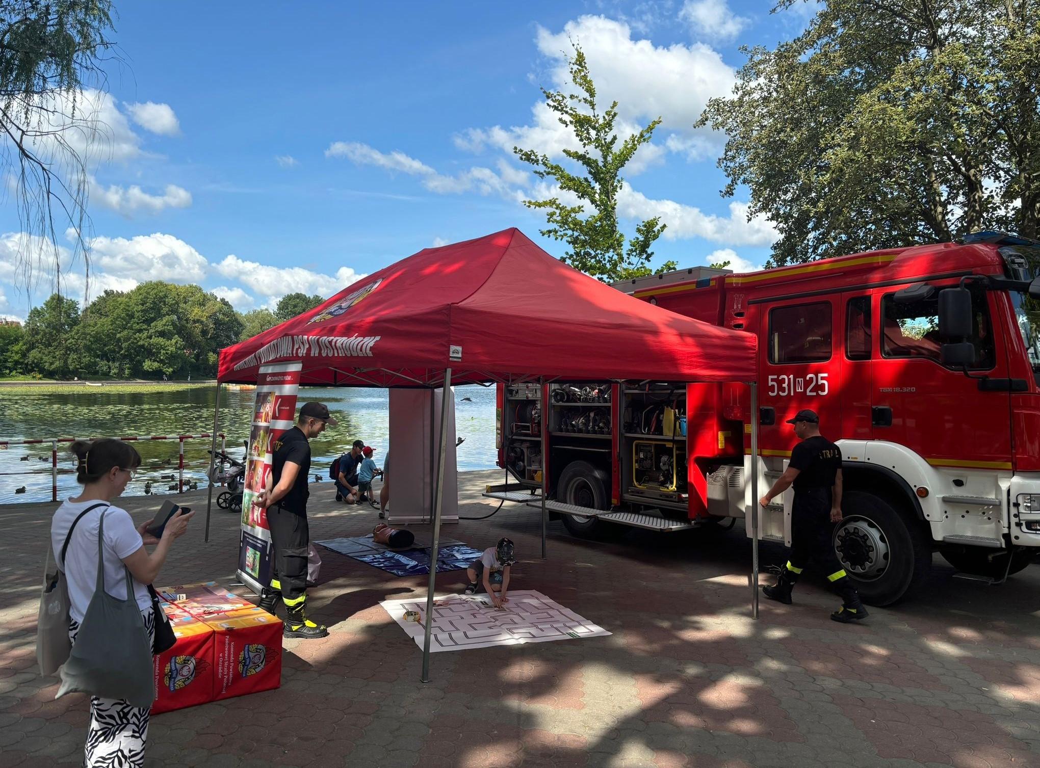 Mając na uwadze jak istotne jest bezpieczeństwo dzieci i młodzieży podczas letniego wypoczynku w sobotę 3 sierpnia ostródzcy strażacy poraz w kolejny w te wakacje wzięli udział w promowaniu bezpiecznego wypoczynku. W ramach akcji "Bezpieczne wakacje" funkcjonariusze KP PSP w Ostródzie uczestniczyli w "Dniach Ostródy", gdzie przeprowadzili szereg rozmów dotyczących wypoczynku nad wodą. Na bulwarze jeziora Drwęckiego nasi strażacy rozdali ulotki tematyczne oraz przeprowadzili pokazy udzielania pierwszej pomocy i zaprezentowali dzieciom wyposażenie i sprzęt pojazdów bojowych.