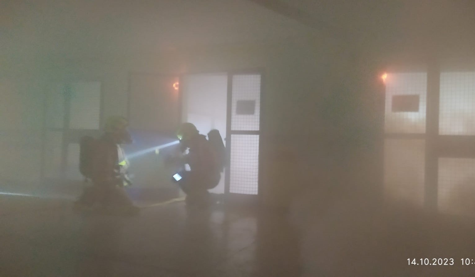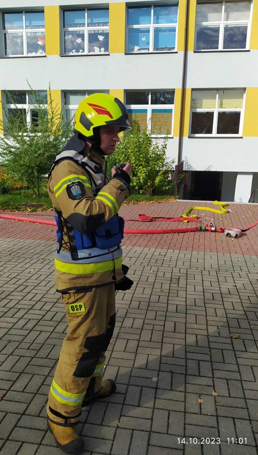 Po odprawie rozpoczęto pierwszy epizod ćwiczeń. Założenie związane było z organizacją i realizacją działań ratowniczo-gaśniczych podczas pożaru w obiekcie Szkoły Podstawowej w Łukcie. Podczas ćwiczeń zwrócono szczególną uwagę na organizację łączności na miejscu zdarzenia, techniki przeszukiwania zadymionych pomieszczeń oraz techniki ewakuacji. Przećwiczono również epizod udzielania pomocy strażakowi, który doznał obrażeń w trakcie prowadzenia akcji ratowniczej.