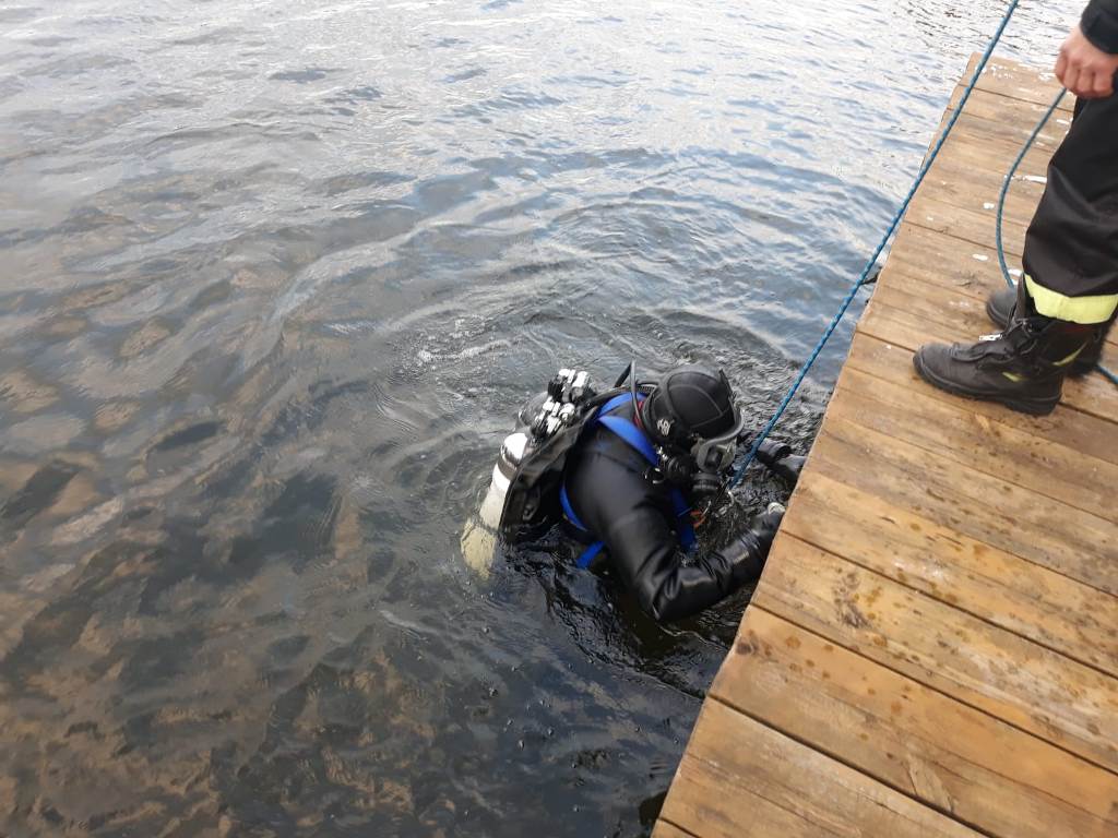 Łódź motorowa z dużą prędkością uderzyła w pomost. Jak poinformowali świadkowie zdarzenia, trzy osoby wypadły do wody, a łódź zatonęła. Do akcji ratunkowej z ostródzkiej jednostki ratowniczo-gaśniczej zadysponowano specjalistyczną grupę ratownictwa wodno-nurkowego oraz samochód ratowniczo-gaśniczy. Ponadto dyspozycję wyjazdu otrzymali strażacy ochotnicy z Miłomłyna. Gdy strażacy przybyli na miejsce wypadku okazało się, że do brzegu dopłynęło trzech mężczyzn, rzekomo płynących łodzią. Poszkodowani nie wymagali pomocy medycznej, jednak okoliczności zdarzenia nie były jednoznaczne. Istniało podejrzenie, że w łodzi mógł znajdować się ktoś jeszcze. Nurkowie-strażacy zeszli pod wodę w poszukiwaniu ewentualnych kolejnych osób poszkodowanych i rozbitej łodzi. Po kilkunastu minutach w odległości 30 metrów od brzegu, na głębokości około 5 metrów odnaleźli łódź. Nie stwierdzono kolejnych poszkodowanych, a stan łodzie nie stwarzał zagrożenia chemiczno-ekologicznego. Na tym etapie działonie ratownicze zostały zakończone.