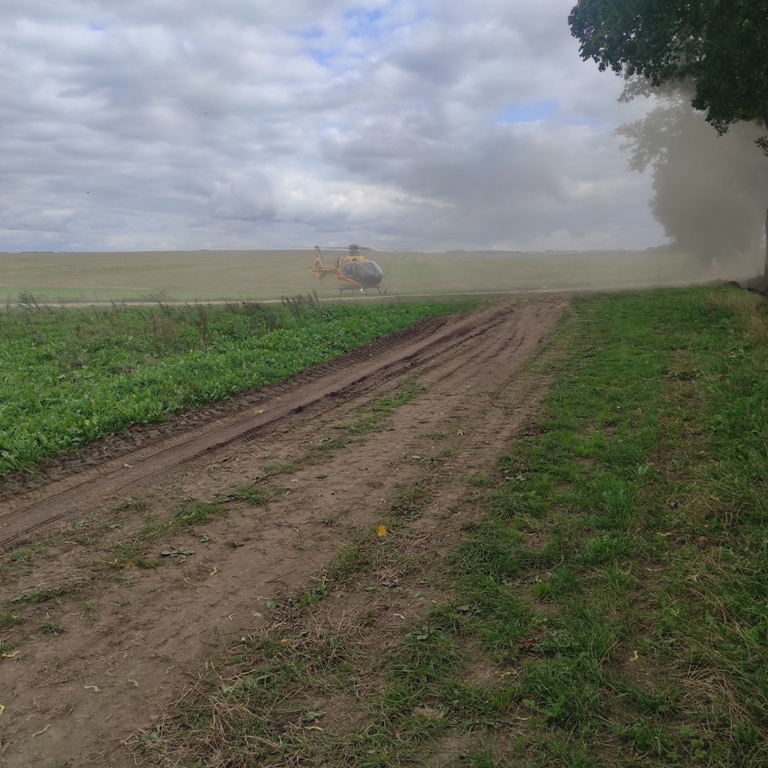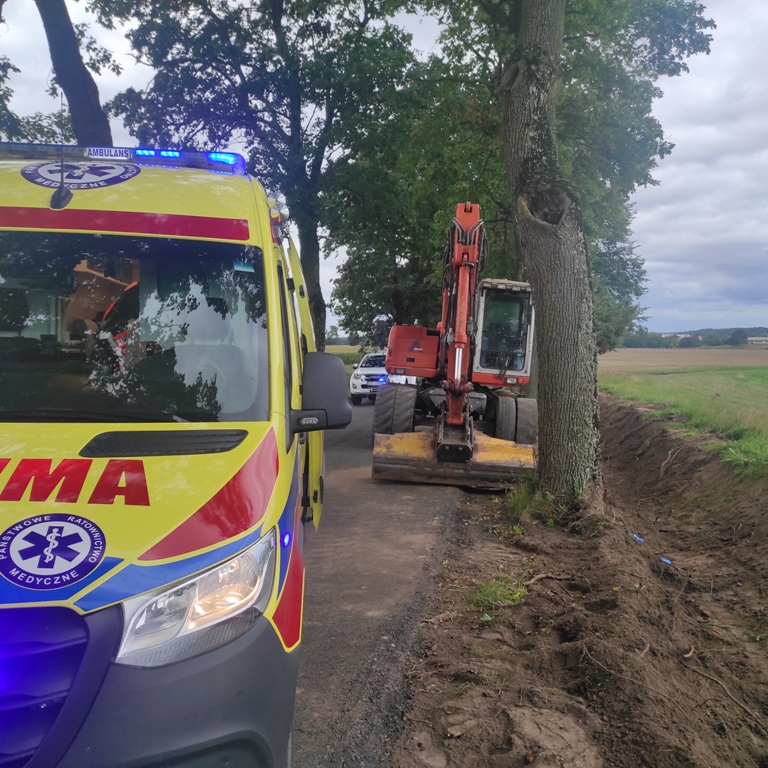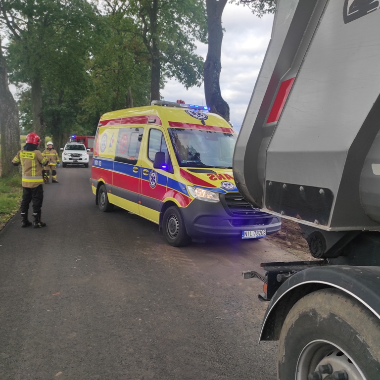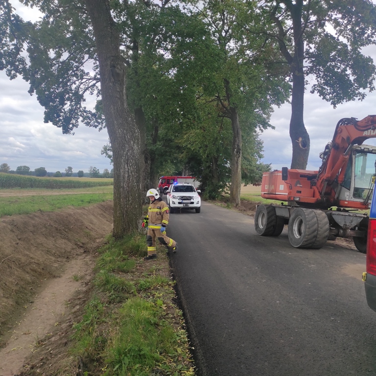 Do nieszczęśliwego wypadku doszło 14 września podczas prac drogowych na remontowanym odcinku drogi Lipowo – Zajączki w gminie Ostróda. Około 60-letni mężczyzna został przygnieciony przez koparkę. Do akcji ratowniczej z ostródzkiej JRG wyjechał samochód ratowniczo-gaśniczy oraz rozpoznawczo ratowniczy. Ponadto dyspozycję wyjazdu otrzymały jednostki z Ochotniczych Straży Pożarnych w Smykówku i Pietrzwałdzie. Na miejscu wypadku strażacy i ratownicy z Państwowego Ratownictwa Medycznego zastali leżącego na drodze mężczyznę. Poszkodowany był przytomny, jednak uskarżał się na dolegliwości bólowe. Strażacy wraz z ratownikami medycznymi przy pomocy noszy ortopedycznych przenieśli mężczyznę do karetki pogotowia na dalsze badania. Stan 60-latka okazał się poważny. Na miejsce wezwany został śmigłowce Lotniczego Pogotowia Ratunkowego. Strażacy zabezpieczyli operację lądowania i startu śmigłowca HEMS, którym poszkodowany został zabrany do szpitala.