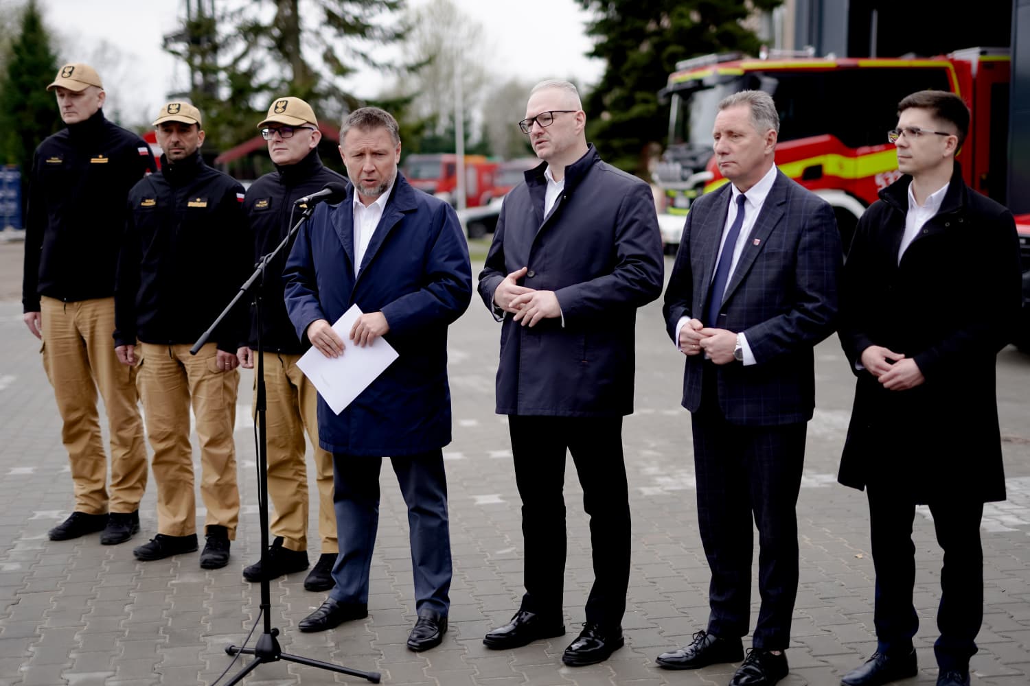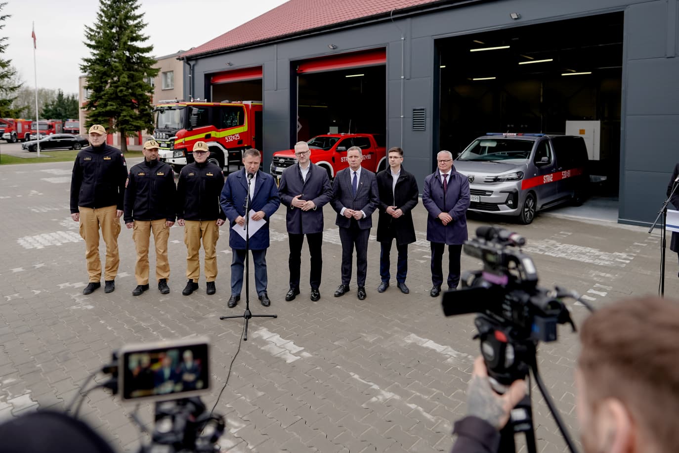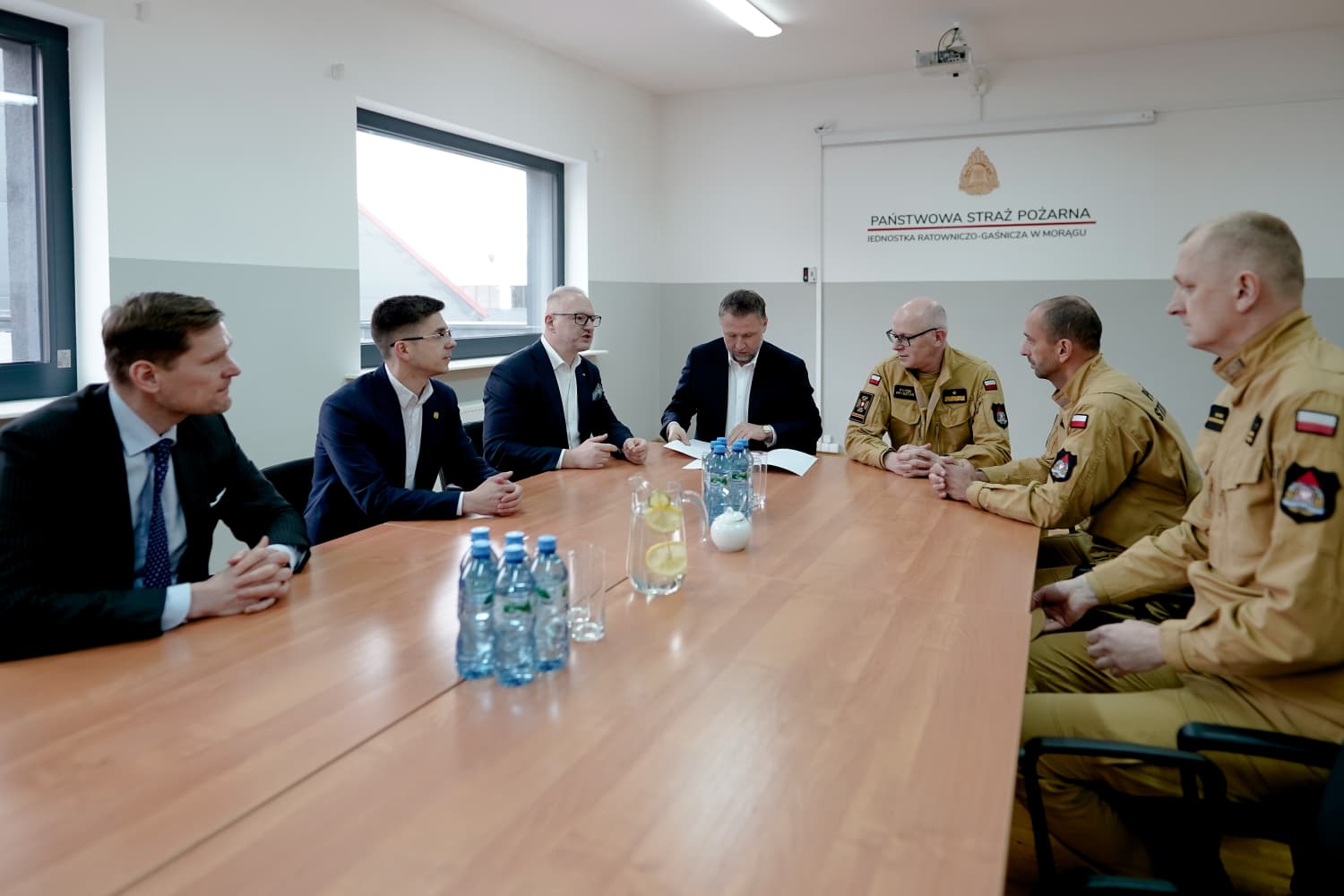 Minister Spraw Wewnętrznych i Administracji Marcin Kierwiński z wizytą w JRG Morąg - konferencja prasowa na temat programu OL i OC