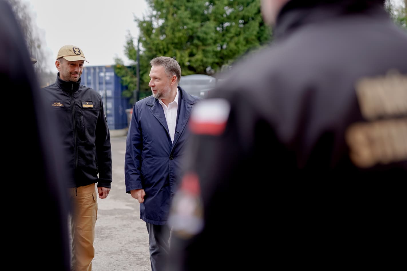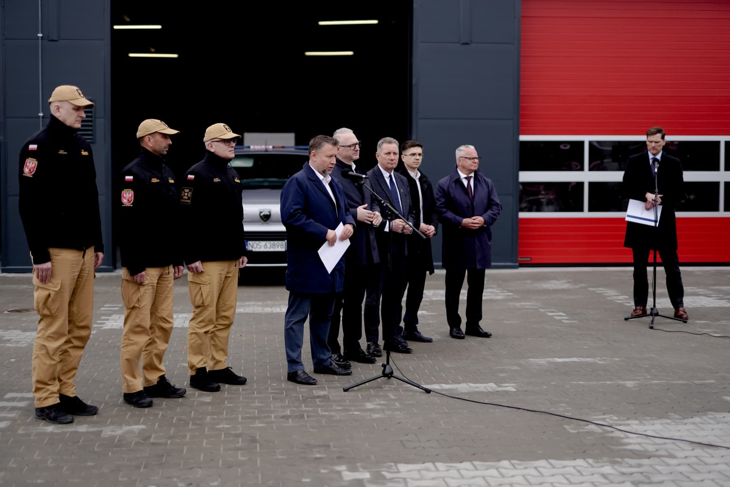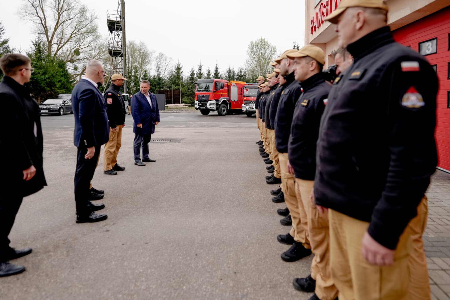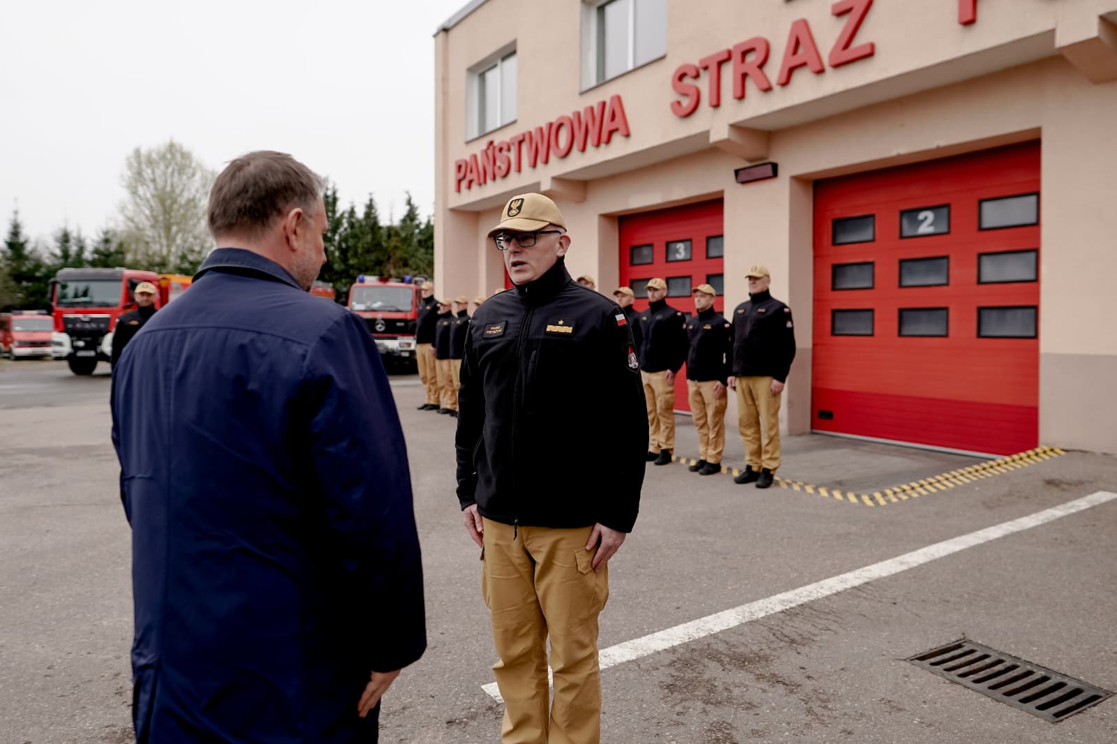 Minister Spraw Wewnętrznych i Administracji Marcin Kierwiński z wizytą w JRG Morąg - konferencja prasowa na temat programu OL i OC