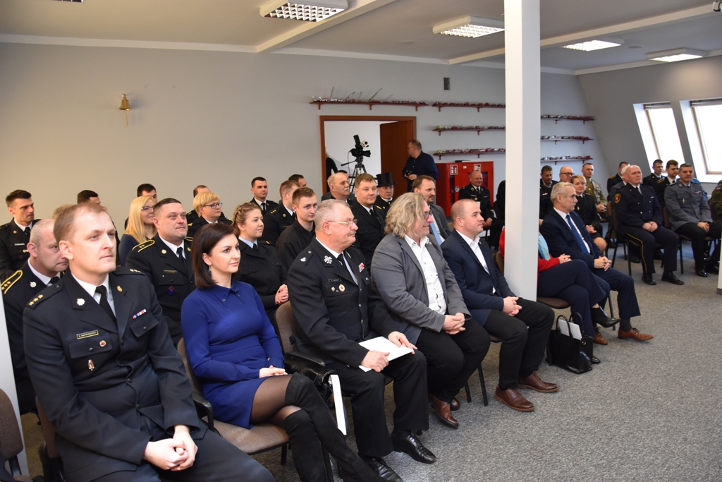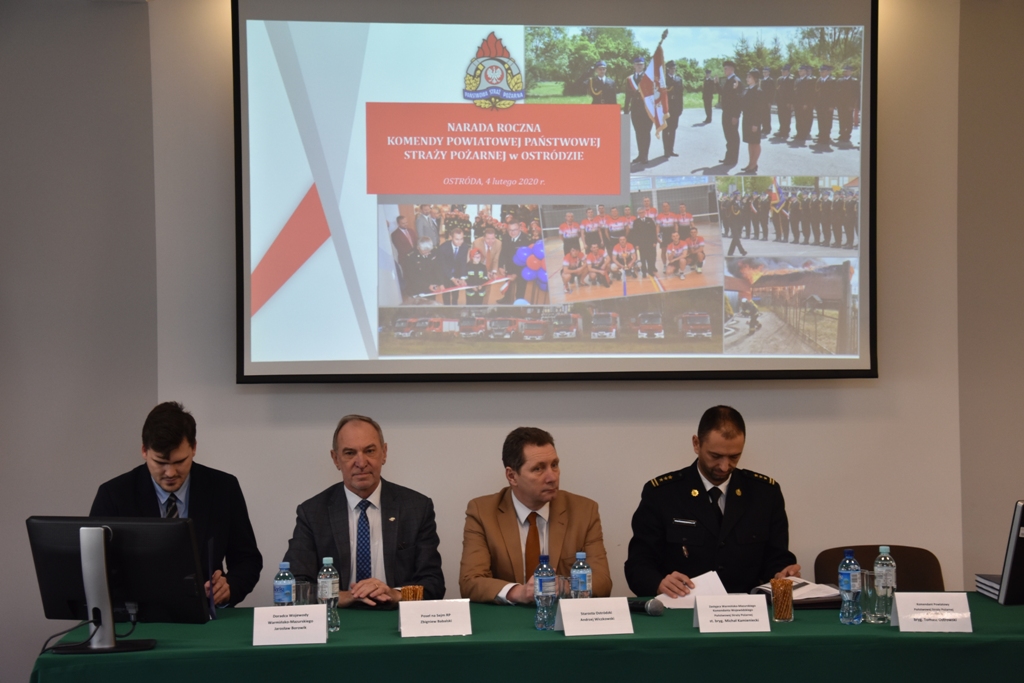oraz burmistrzowie i wójtowie powiatu ostródzkiego, szefowie służb i instytucji współpracujących z PSP, przedstawiciele związków zawodowych oraz funkcjonariusze i pracownicy cywilni komendy. Zgromadzonych przywitał komendant powiatowy PSP w Ostródzie – bryg. Tomasz Ostrowski, który następnie wraz ze swoim zastępcą kpt. Rafałem Napiórkowskim przedstawił charakterystykę powiatu ostródzkiego w zakresie ochrony przeciwpożarowej oraz poszczególne obszary działalności komendy w 2019 roku.