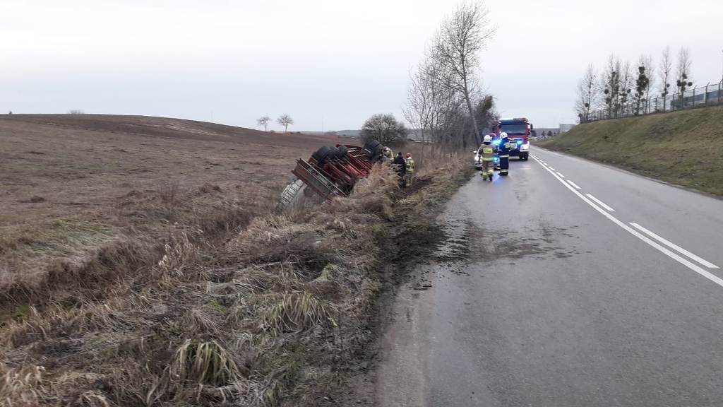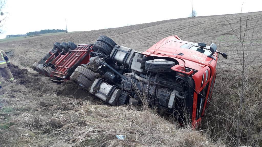 Do drugiego zdarzenia drogowego doszło kilkanaście minut po godzinie siódmej na drodze technicznej w pobliżu zakładów mięsnych w Tyrowie. Ciągnik siodłowy z naczepą – cysterną wypadł z drogi i przewrócił się do rowu. Zestawem przewożono 22 tony płynu do oczyszczania spalin w silnikach. W akcji ratowniczej udział brały samochody ratowniczo-gaśnicze z JRG Ostróda i OSP Samborowo. Ciężarówką podróżował sam kierowca, który nie odniósł obrażeń. Strażacy zabezpieczyli miejsce zdarzenia i wyciek oleju napędowego ze zbiornika ciągnika siodłowego. Cysterna nie rozszczelniła się, jednak aby usunąć zestaw ciężarowy z rowu konieczne będzie przepompowanie ładunku do cysterny zastępczej. Utrudnienia w ruchu w tym miejscy mogą potrwać kilka godzin.