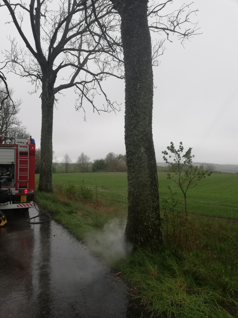 W środowe popołudnie, 13 maja zgłoszono pożar przydrożnego drzewa, w okolicy miejscowości Książnik – gmina Miłakowo.