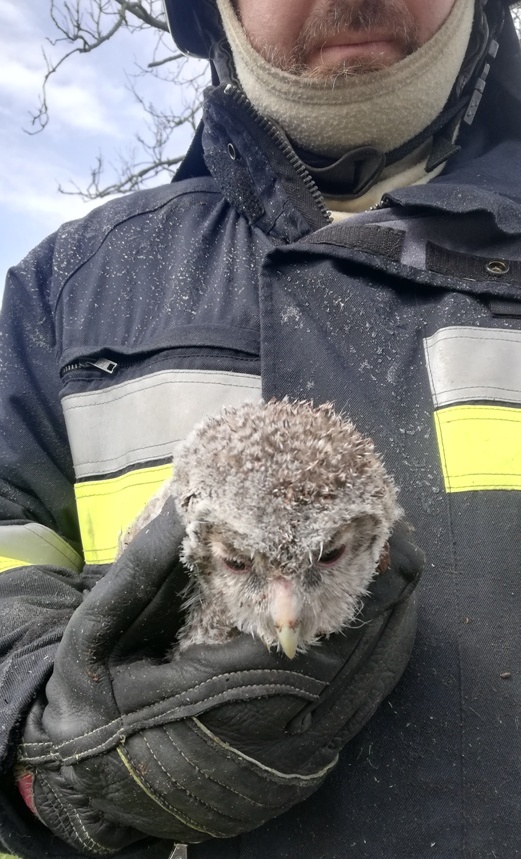 Do akcji gaśniczej zadysponowano jeden samochód ratowniczo-gaśniczy z miłakowskiej Ochotniczej Straży Pożarnej. Okazało się, że drzewo pali się wewnątrz pnia. Strażacy ugasili pożar i ocenili stan drzewa. Niestety stanowiło poważne zagrożenie dla ruchu na drodze powiatowej. Pień wewnątrz był wypalony. Drzewo mogło w każdej chwili powalić się na jezdnię. Trzeba było je ściąć. Strażacy przed wycinką spostrzegli, że w jego koronie znajduje się ptasie gniazdo. Podejrzewając, że o tej porze roku mogą w nim znajdować się młode ptaki, zdjęli gniazdo z drzewa. Nie mylili się, była w nim młoda sowa. Drzewo bezpiecznie zostało wycięte, a młody ptak nie został pozostawiony sam sobie. Miłakowscy strażacy przewieźli sowę do schroniska dla ptaków w Bukwałdzie.
