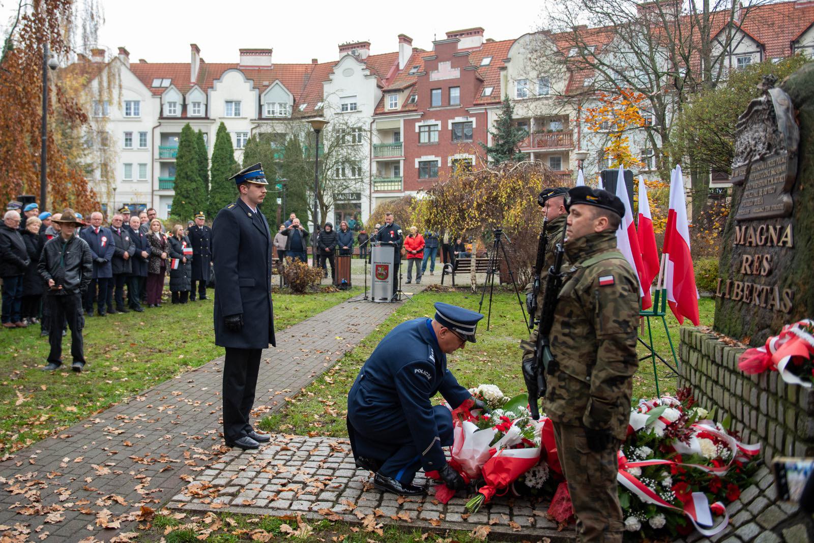 Również tego dnia Zastępca Komendanta Powiatowego PSP w Ostródzie st. kpt. Łukasz Zaniewski oraz poczet sztandarowy ostródzkiej Komendy wzięli udział w obchodach organizowanych przez Urząd Miejski w Ostródzie. W trakcie tej uroczystości odbyła się msza święta, przemarsz ulicami Ostródy oraz złożenie kwiatów pod pomnikiem 100-lecia Odzyskania Niepodległości.