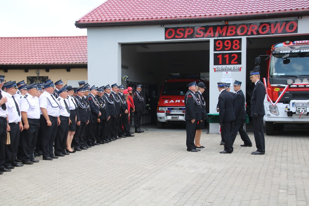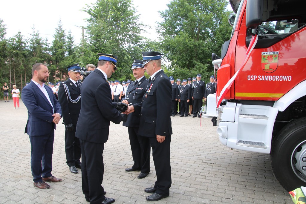 Ochotnicza Straż Pożarna w Samborowie w 2020 roku otrzymała nowy średni samochód ratowniczo-gaśniczy oraz zakończyła rozbudowę remizy OSP. Z powodu pandemii nie było możliwości zorganizowania oficjalnych uroczystości przekazania samochodu i otwarcia remizy. W sobotę 17 lipca odbyła się uroczysta zbiórka z okazji oficjalnego przekazania średniego samochodu ratowniczo-gaśniczego oraz otwarcia remizy. Na uroczystości swoją obecnością zaszczycili między innymi: Senator RP Bogusława Orzechowska, Artur Chojecki Wojewoda Warmińsko-Mazurski, st. bryg. Krzysztof Mierzejewski Zastępca Warmińsko-Mazurskiego Komendanta Wojewódzkiego PSP, Prezes Zarządu Wojewódzkiego Funduszu Ochrony Środowiska i Gospodarki Wodnej w Olsztynie Jarosław Bogusz, Grzegorz Kierozalski Dyrektor Krajowego Ośrodka Wsparcia Rolnictwa w Olsztynie, bryg. Piotr Wlazłowski iławski Komendant Powiatowy PSP, st. kpt. Rafał Napiórkowski Zastępca Komendanta Powiatowego PSP w Ostródzie, Wójt Gminy Ostróda Bogusław Fijas, a także przedstawiciele jednostek OSP z gminy oraz miłośnicy pożarnictwa. Podczas uroczystości wręczone zostały również odznaczenia i wyróżnienia druhom OSP.