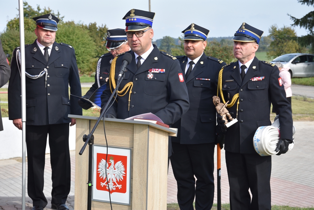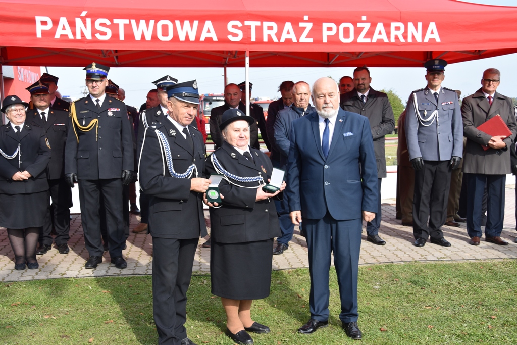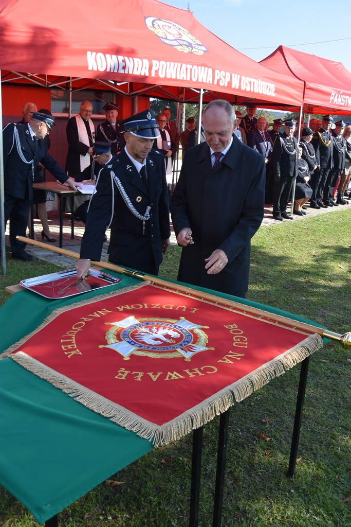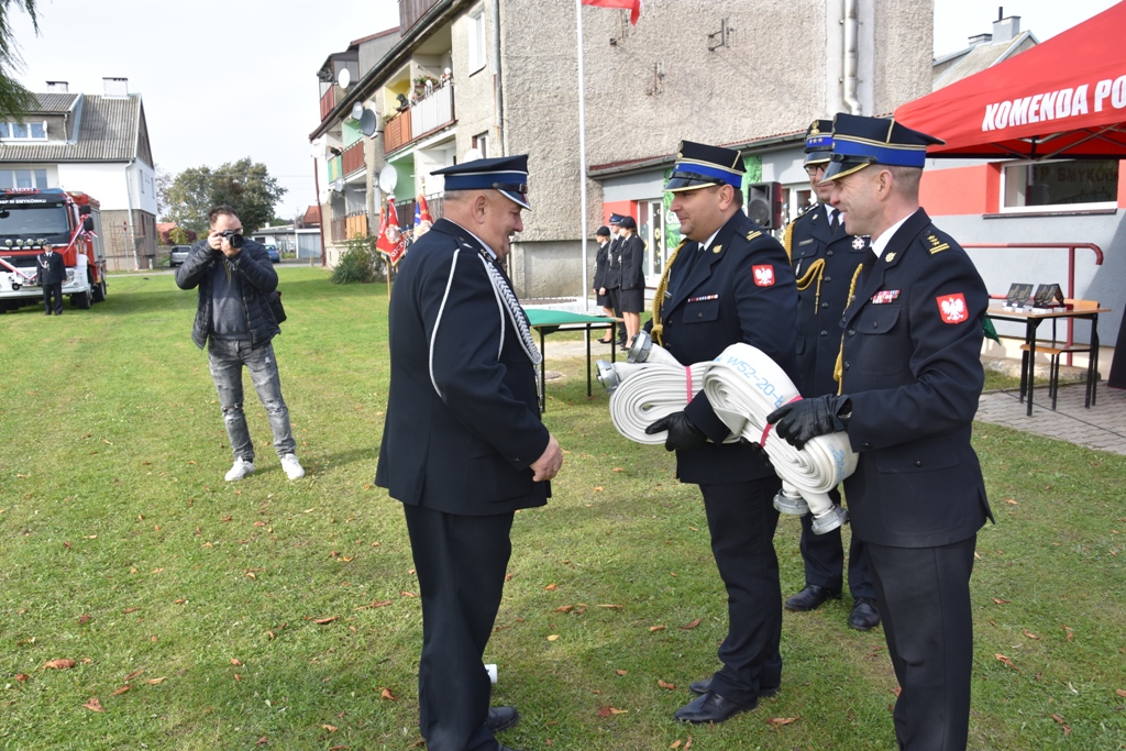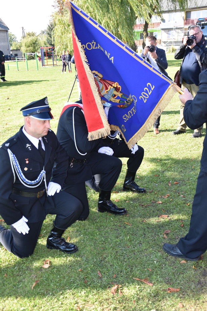 W sobotę 1 października w samo południe w Smykówku rozpoczęła się uroczysta zbiórka z okazji nadania sztandaru Ochotniczej Straży Pożarnej Smykówko oraz oficjalnego przekazania nowego samochody ratowniczo-gaśniczego. Przewodniczącą Komitetu Fundacji Sztandaru była Pani Senator Bogusława Orzechowska, która w symboliczny sposób przekazała sztandar w ręce strażaków. Kolejnym punktem uroczystości było oficjalne przekazanie i poświęcenie nowego samochodu ratowniczo-gaśniczego Volvo, który zakupiono ze środków MSWiA w uzupełnieniu o środki samorządu województwa oraz gminy Ostróda. Jak strażacy przyznali, nowy pojazd pożarniczy to spełnienie ich marzeń. Kluczyki i dokumenty w symboliczny sposób przekazali Poseł na Sejm RP Zbigniew Babalski, dh Gustaw Marek Brzezin Prezes Zarządu Oddziału Wojewódzkiego ZOSP RP, a zarazem Marszałek Województwa, Zastępca Warmińsko-Mazurskiego Komendanta Wojewódzkiego PSP st. bryg. Tomasz Ostrowski oraz Wójt Gminy Ostróda Bogusław Fijas. Podczas uroczystości wręczone były odznaczenia oraz wyróżnienia. Prezes OSP Smykówko dh Irena Jara przekazała podziękowania wszystkim darczyńcom i osobom, które pomogły w organizacji uroczystości. Oprócz licznej grupy strażaków OSP w uroczystości udział wzięli strażacy PSP na czele z mł. bryg. Łukaszem Jasińskim ostródzkim Komendantem Powiatowym PSP i Komendantem Powiatowym PSP w Iławie st. bryg. Piotrem Wlazłowskim, dh Ryszard Harasim Prezes ZOP ZOSP RP w Ostródzie, samorządowcy, leśnicy, oraz przedsiębiorcy oraz mieszkańcy Smykówka i sąsiednich miejscowości.