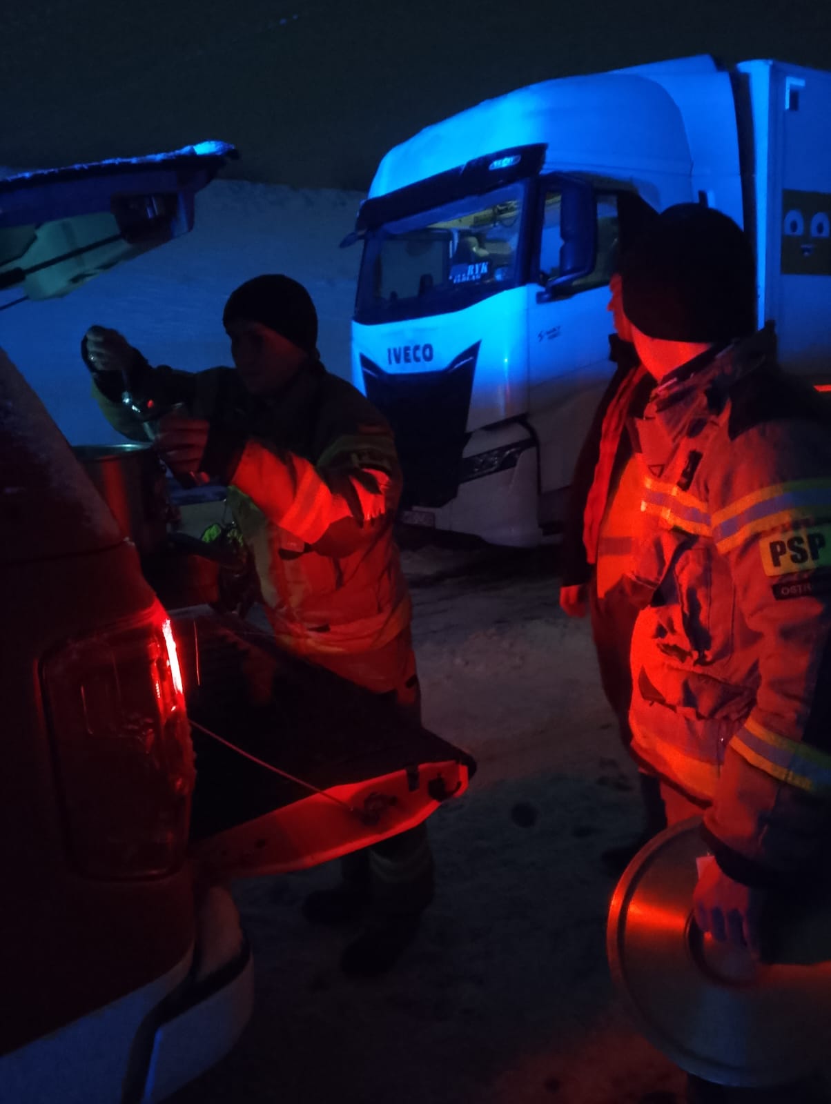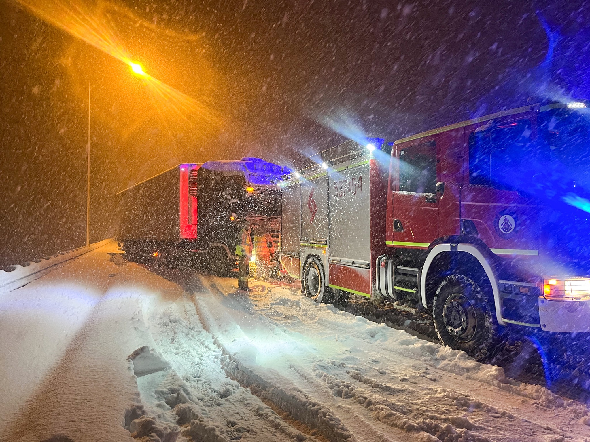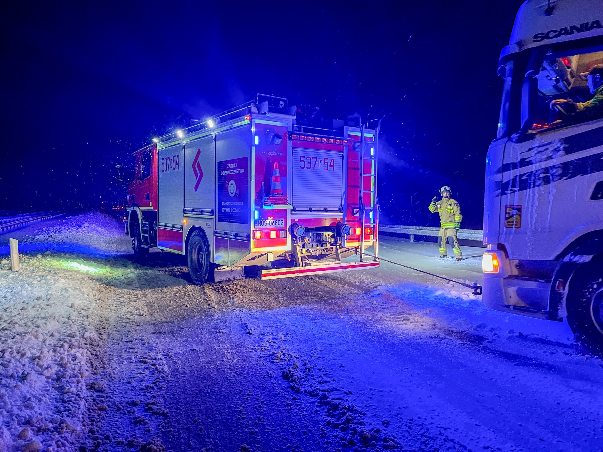 - 24 miejscowe zagrożenia bezpośrednio związane z intensywnymi opadami śniegu i/lub silnego wiatru, które dotyczyły pomocy w wyciągnięciu pojazdów z zasp śnieżnych oraz drzew pochylonych lub tarasujących drogę. Najpoważniejsze zdarzenie miało miejsce na drodze ekspresowej S7 w obu kierunkach w okolicy Rychnowskiej Woli (pikietażu 83-84 kilometra), gdzie powstały od kilku do kilkunastokilometrowego korku. W pomoc przy rozwiązaniu tej sytuacji kryzysowej zaangażowani byliśmy od godz. 19:00 30 grudnia do godz. 20:00 następnego dnia 31 grudnia. Łącznie w te działania zaangażowanych było ponad 100 strażaków PSP i OSP