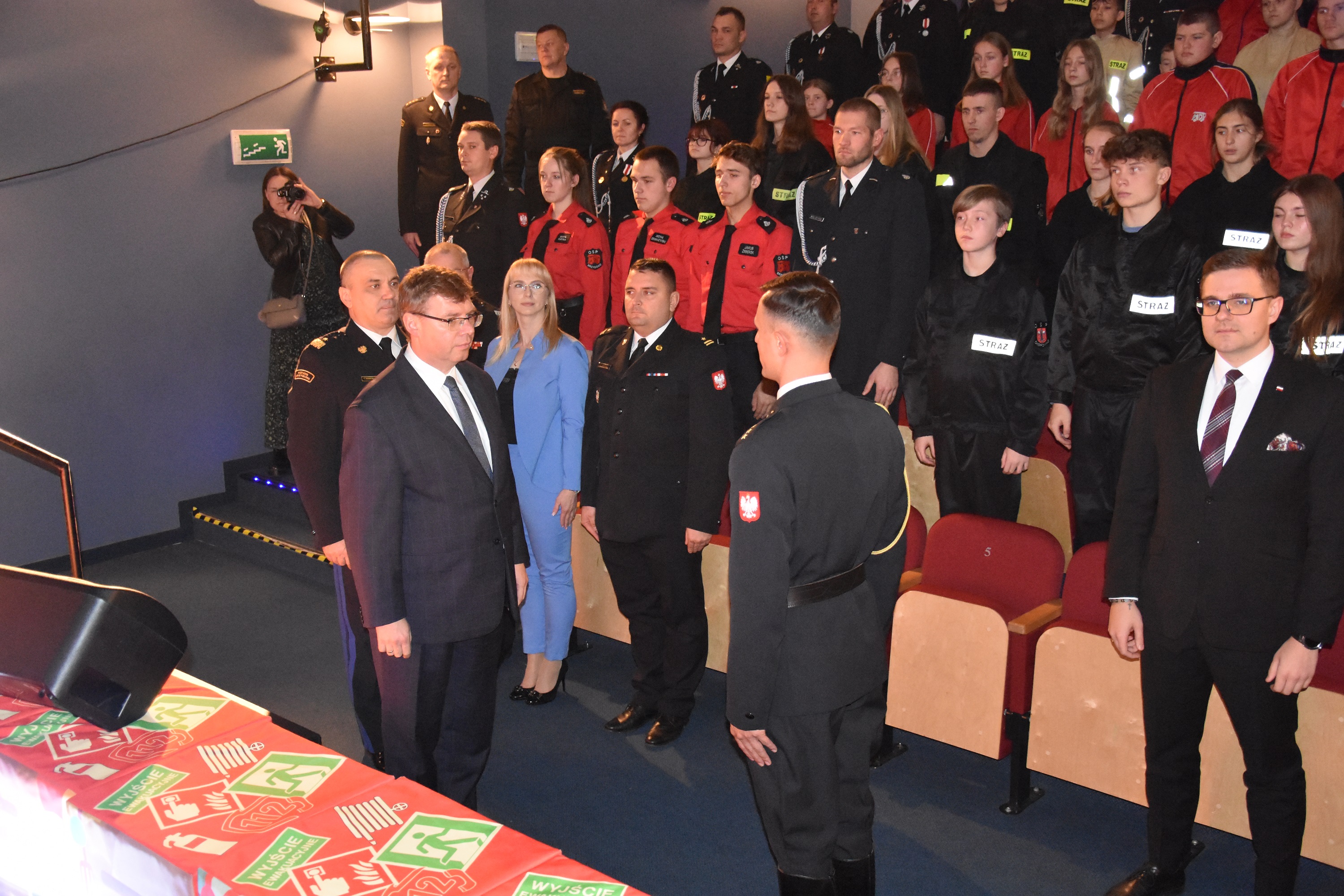 Tego samego dnia w Gminnym Ośrodku Kultury w Łukcie odbyło się również wręczenie promes na zakup sprzętu i umundurowania Młodzieżowym Drużynom Pożarniczym. Na uroczystość przybyli:
