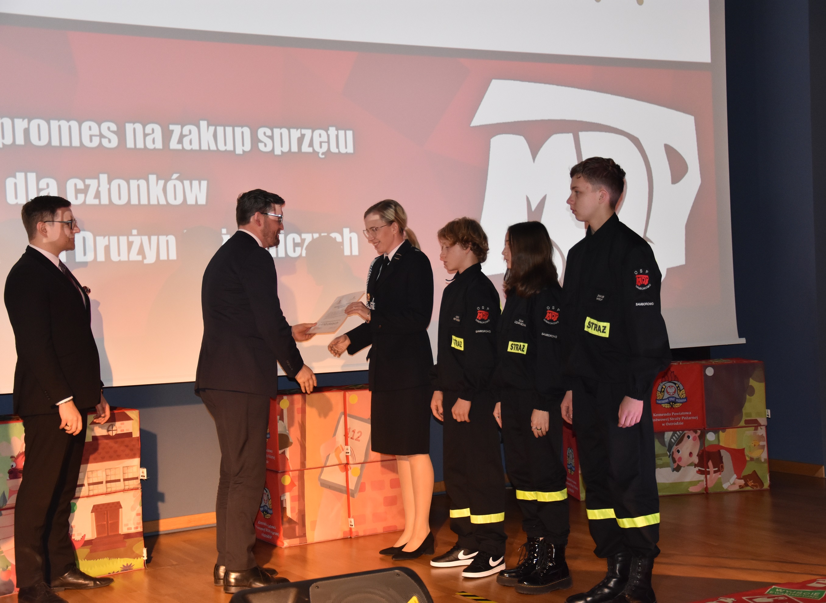 Najmłodsi adepci pożarnictwa z 21 MDP wraz ze swoimi opiekunami odebrali promesy na łączną kwotę 76.890zł. Środki pochodzą z dotacji celowej budżetu państwa. Pozyskane wsparcie pozwoli na zakup umundurowania i wyposażenia osobistego członków MDP oraz wyposażenia do przeprowadzania zawodów sportowo-pożarniczych. Na terenie powiatu ostródzkiego Młodzieżowe Drużyny Pożarnicze zrzeszają około 350 członków.