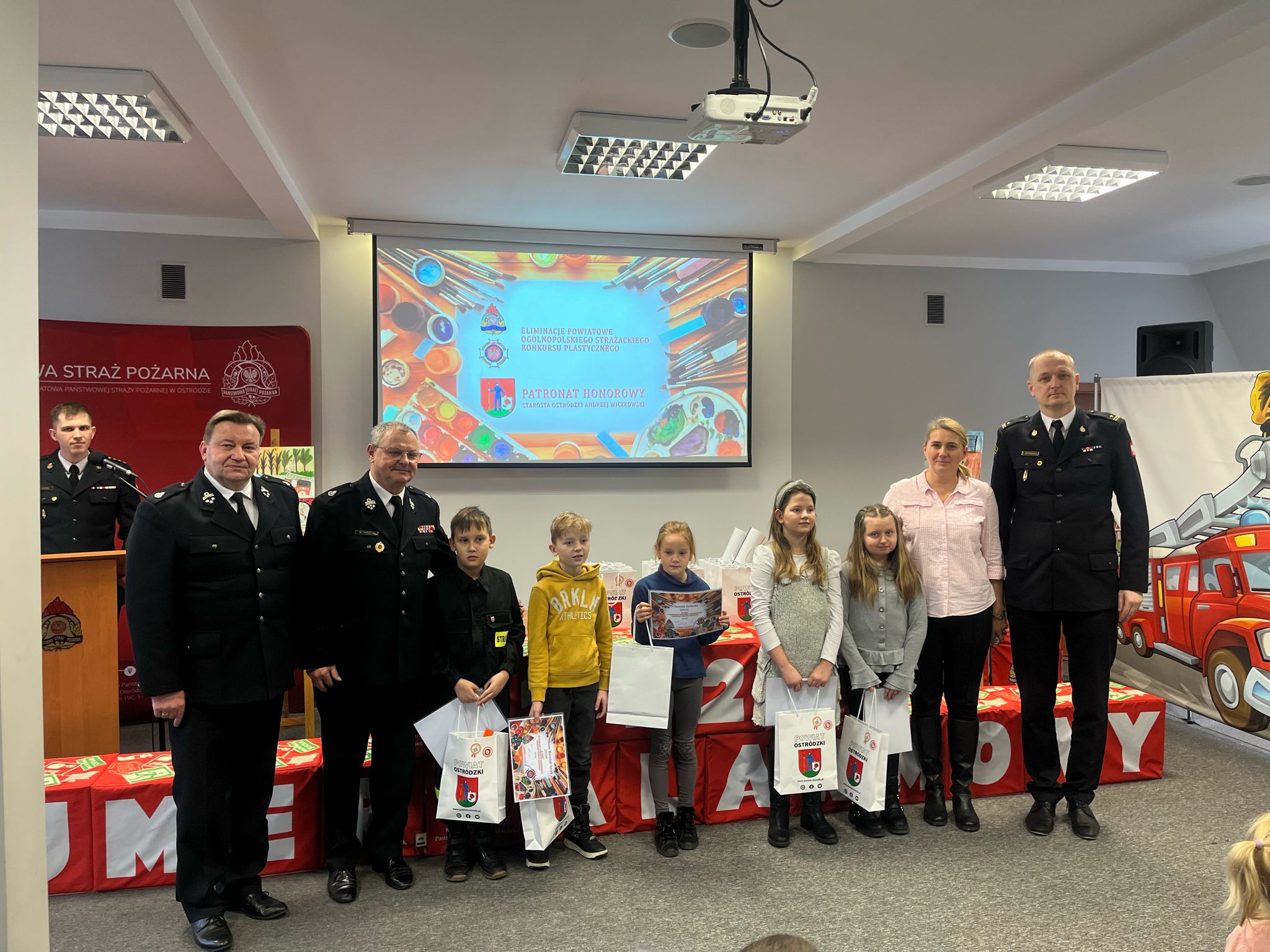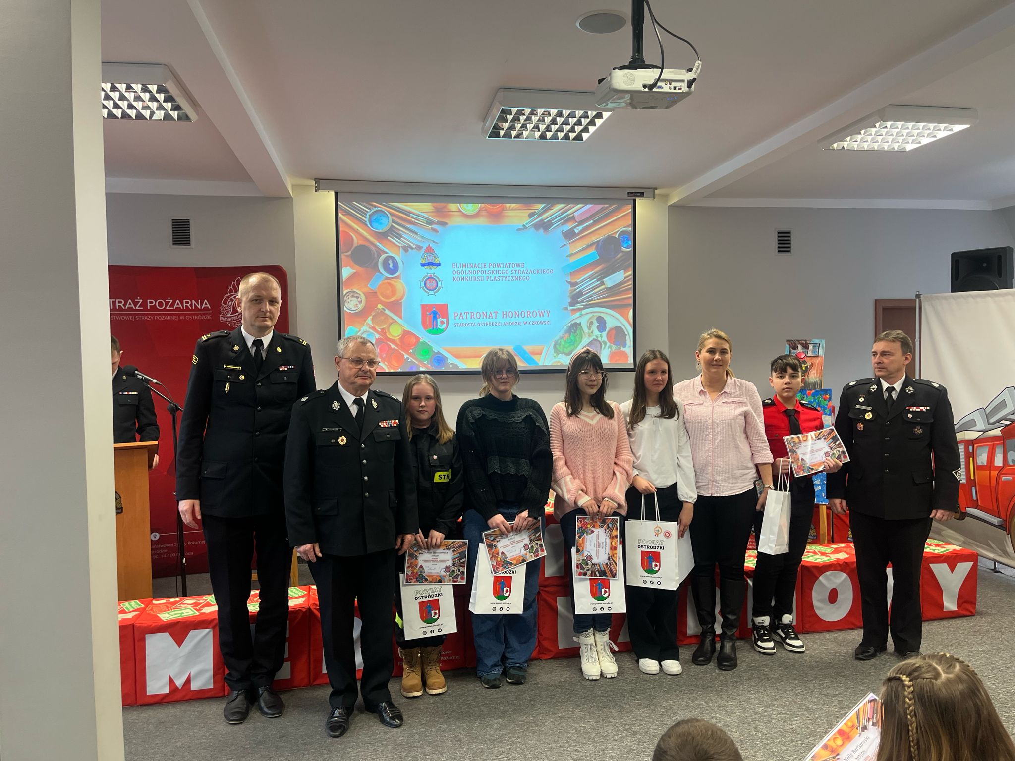 15 lutego w siedzibie Komendy Powiatowej Państwowej Straży Pożarnej w Ostródzie odbyło się podsumowanie eliminacji powiatowych ogólnopolskiego konkursu plastycznego Młodzież Zapobiega Pożarom. Autorom prac, które będą reprezentowały powiat ostródzki na szczeblu wojewódzkim zostały wręczone dyplomy i nagrody, które ufundował Starosta Ostródzki Pan Andrzej Wiczkowski.